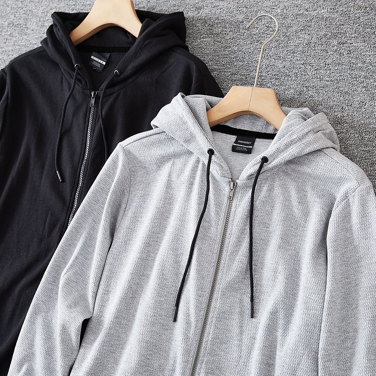 英国外贸 针织肌理感弹力透气 春季薄款男士运动休闲开衫卫衣外套