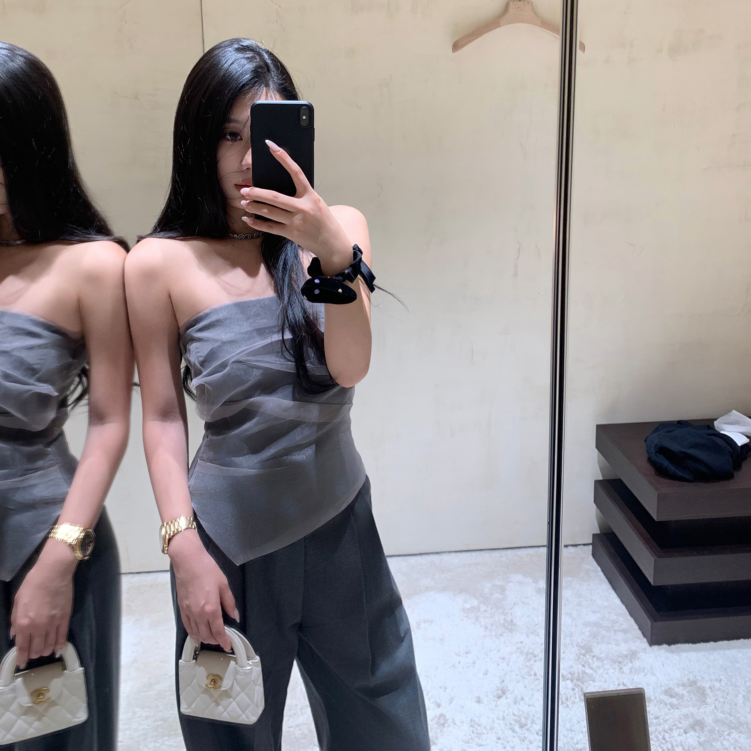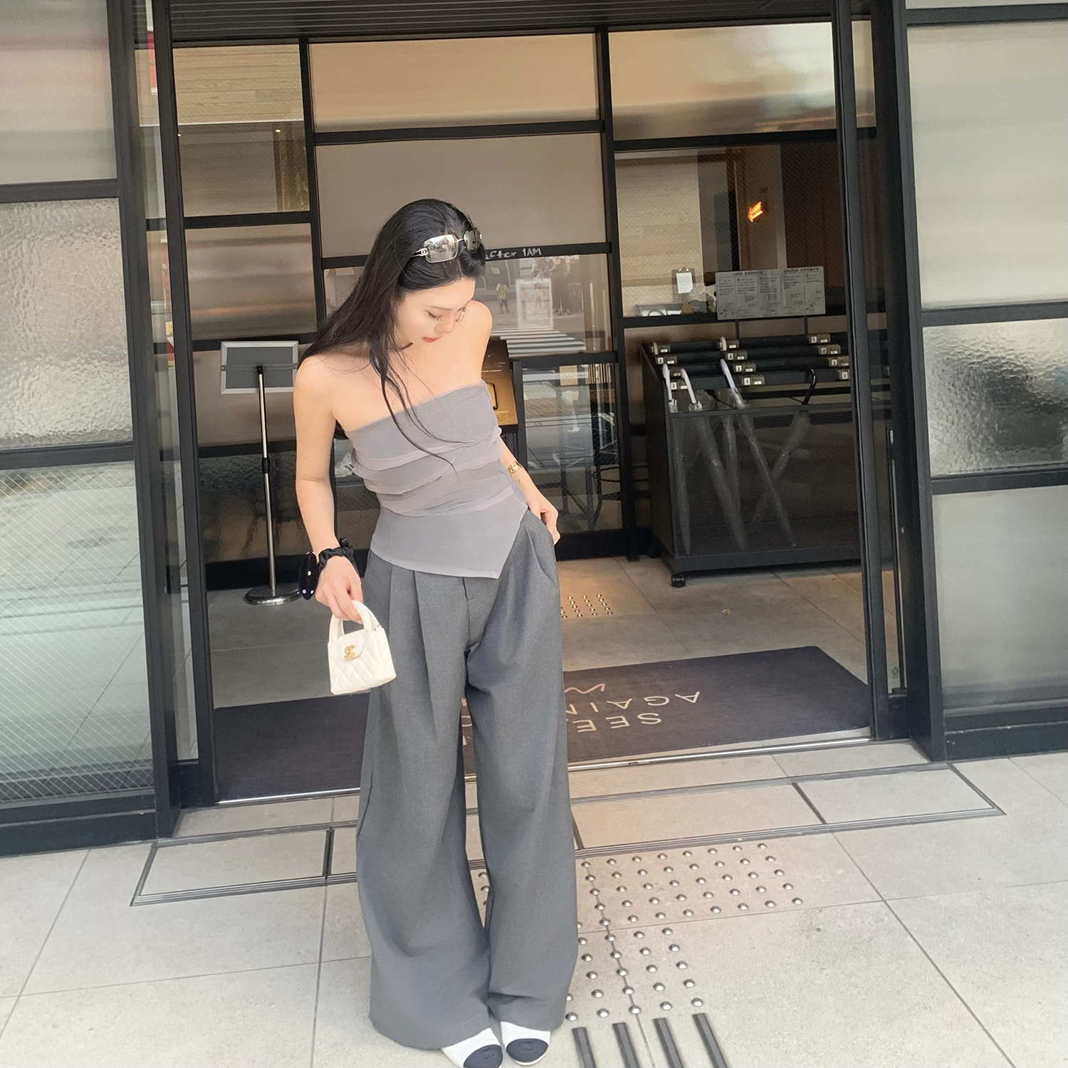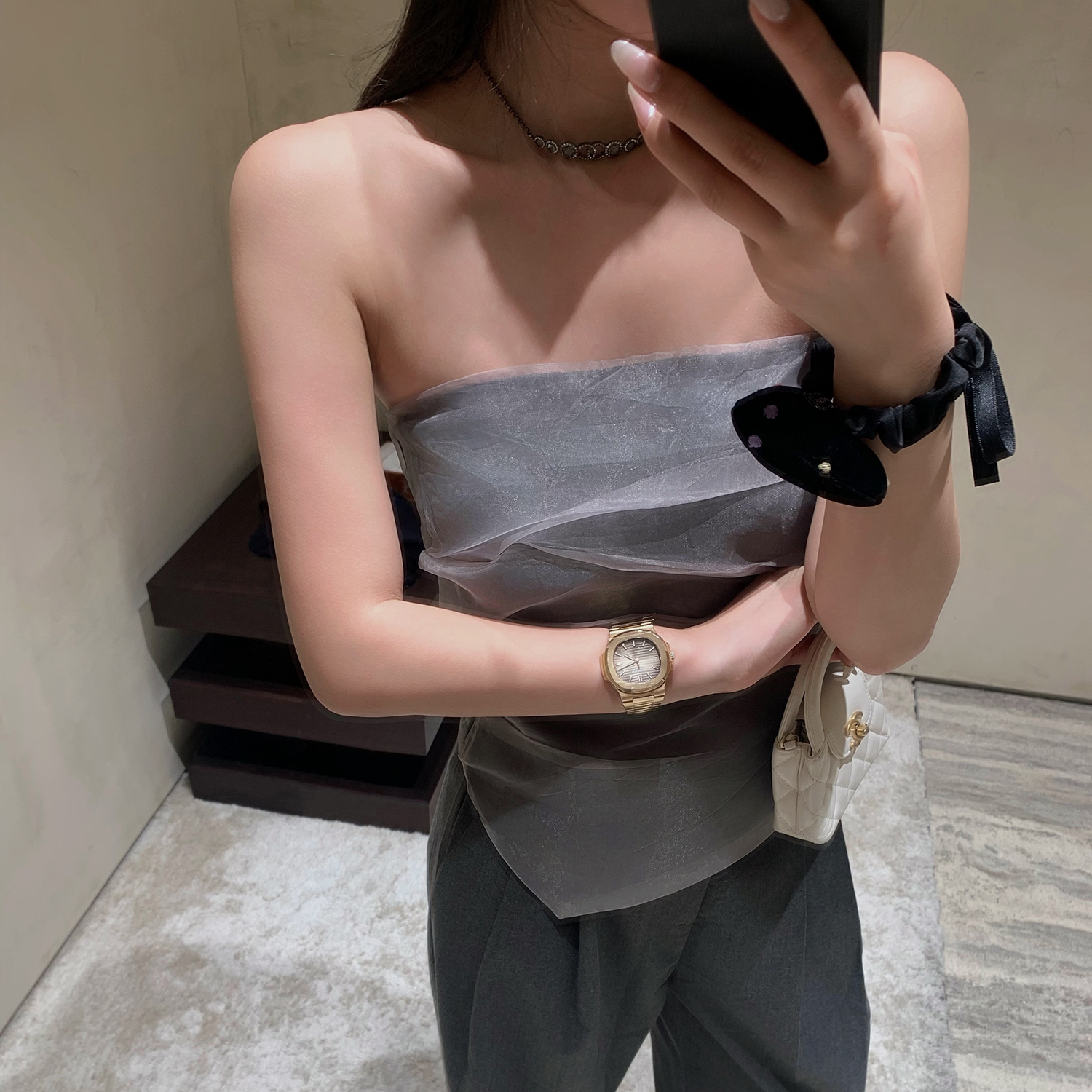Mas Mash 海德公园 2025年薄纱抹胸上衣蕾丝阔腿西装裤两件套装