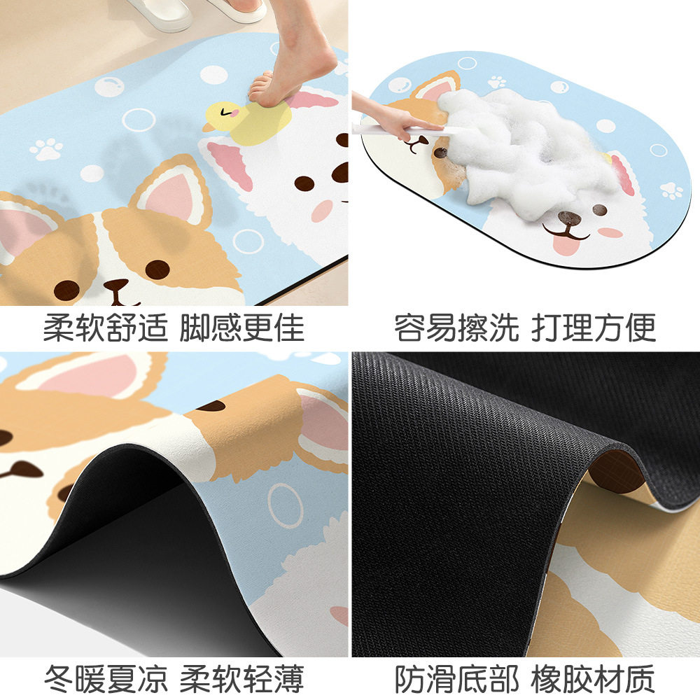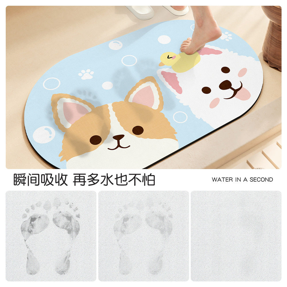 卡通小狗造型浴室吸水地垫家用卫浴地毯硅藻泥防滑脚垫进门垫子