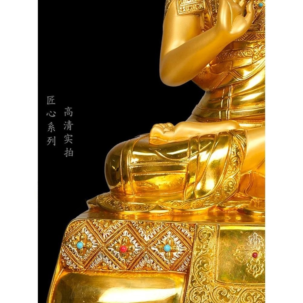 尼泊尔工艺精工黄铜鎏金龙树菩萨纯铜手工錾刻供奉佛像摆件36cm