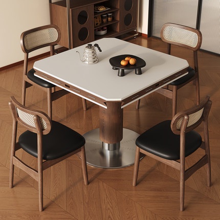 中古风岩板餐桌椅组合简约家用小户型方圆两用复古圆形四折叠餐桌