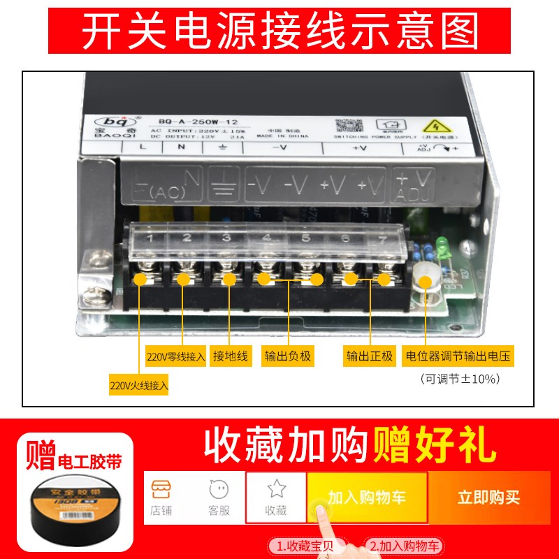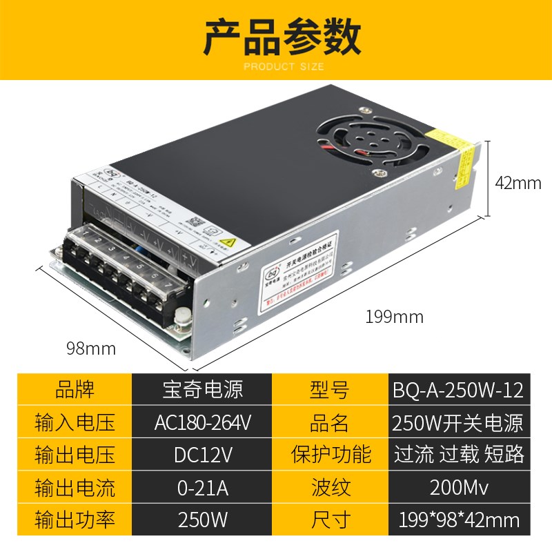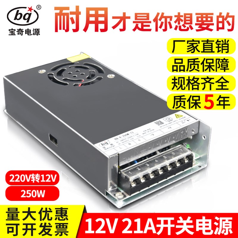 12v21A开关电源220伏转12V制冷片监控设备LED灯250W12v直流变压器