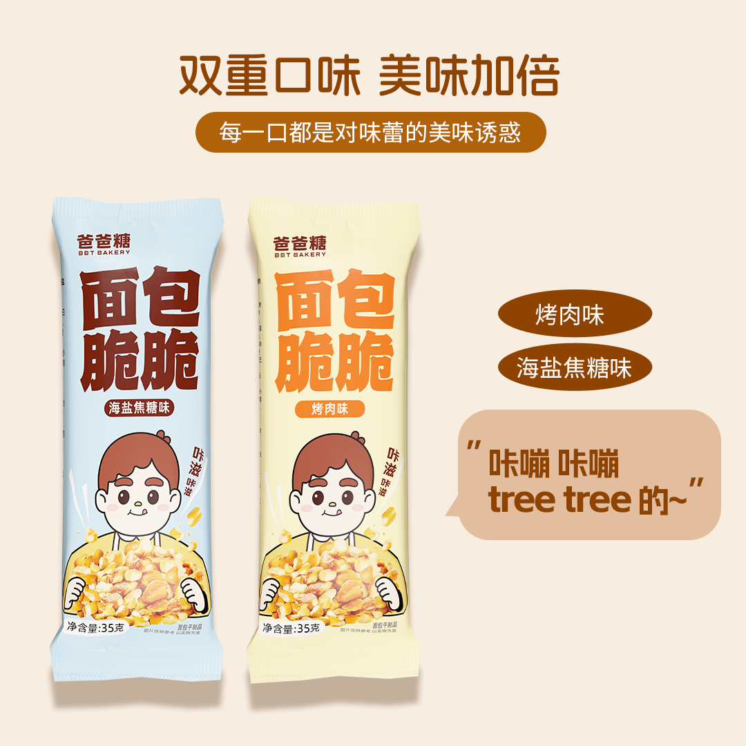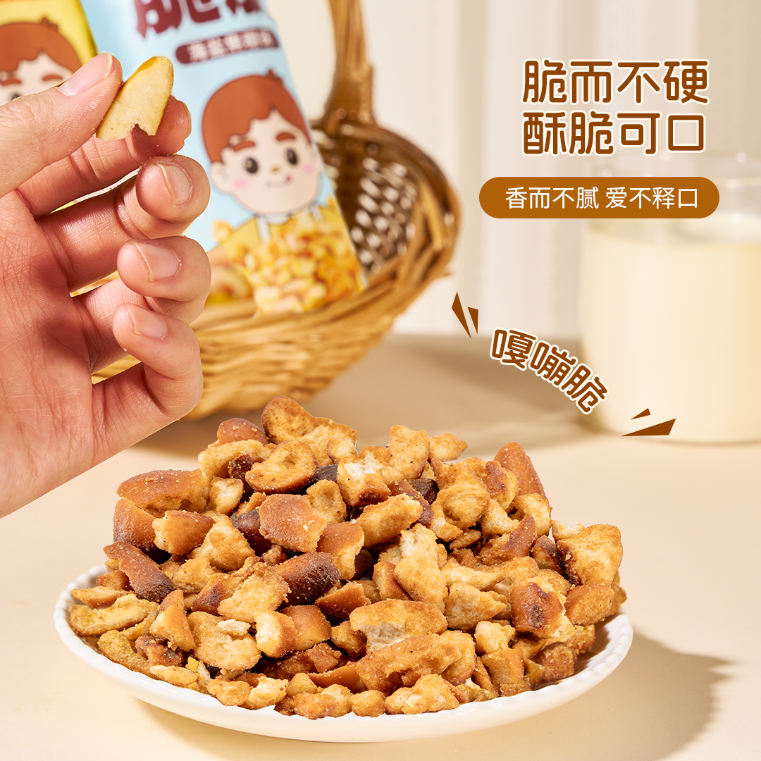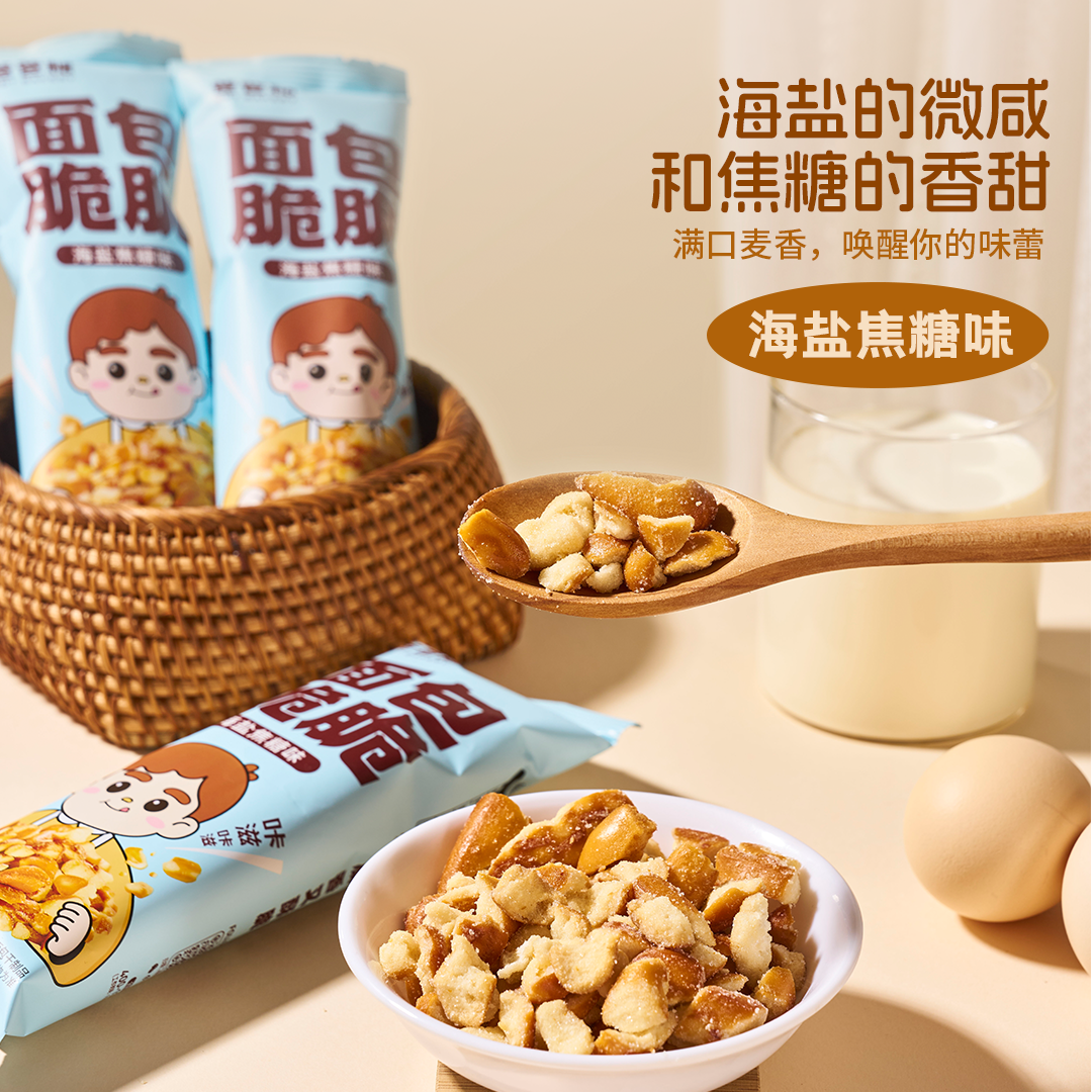 爸爸糖碱水面包丁海盐焦糖味干脆面包干解馋零食下午茶休闲小吃