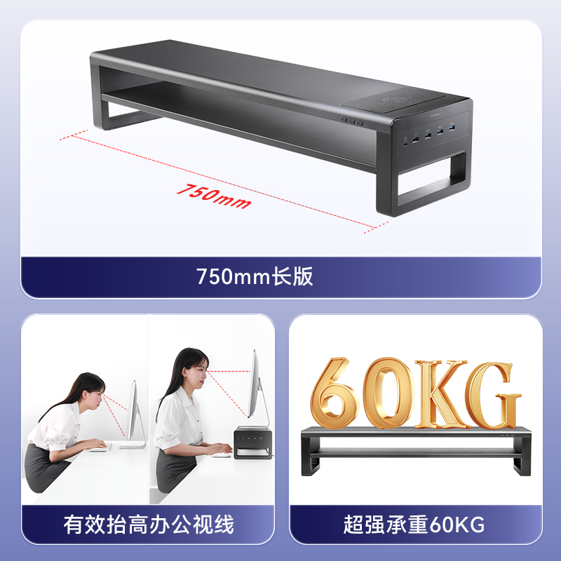 显示器增高架电脑屏幕架子桌面键盘收纳置物架双屏加长多功能usb