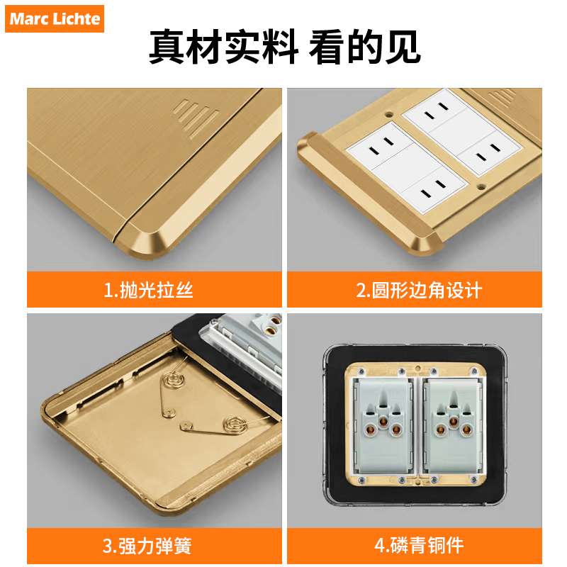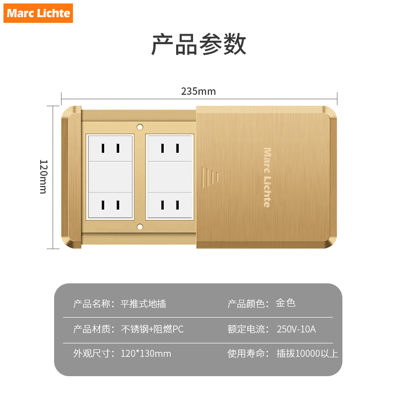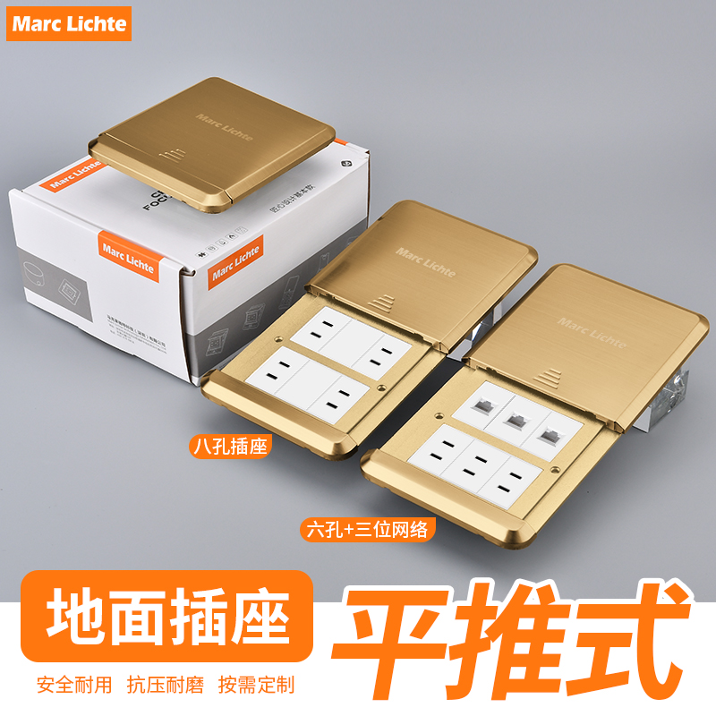 平推式滑盖金色银色不锈钢地板插座二脚二插两孔网络USB充电地插