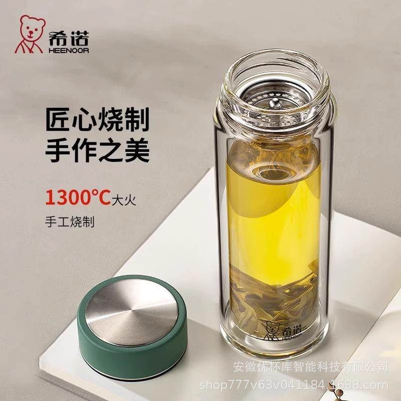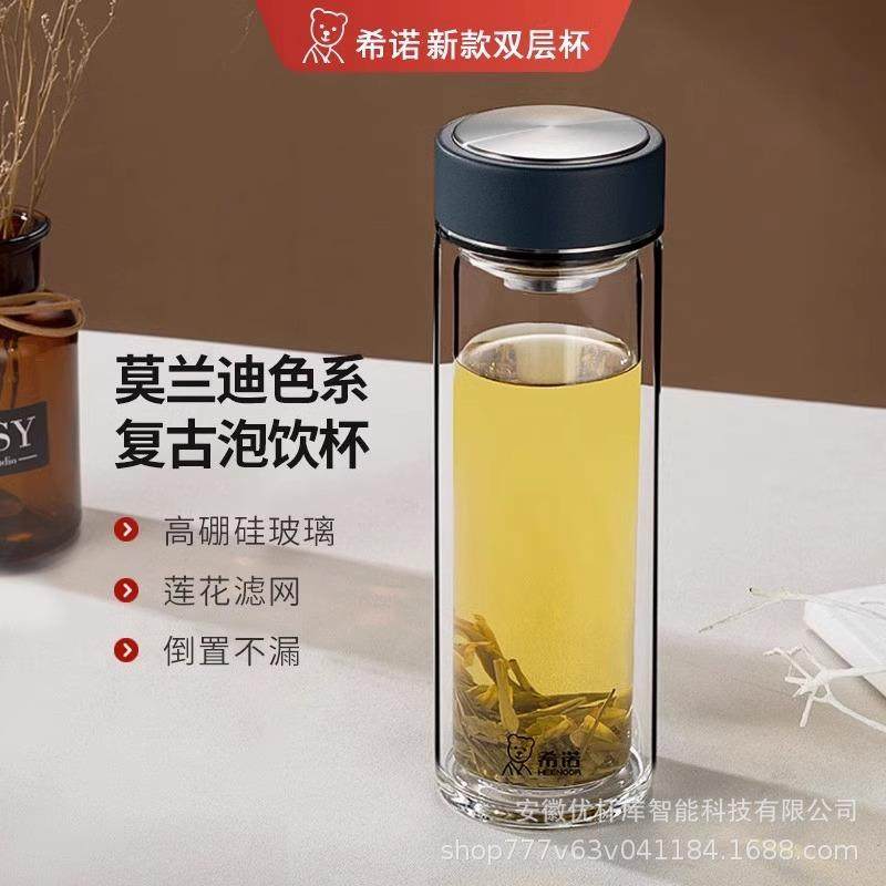 希诺6617新品双层隔热防烫玻璃杯男女士商务泡茶杯家用办公杯子