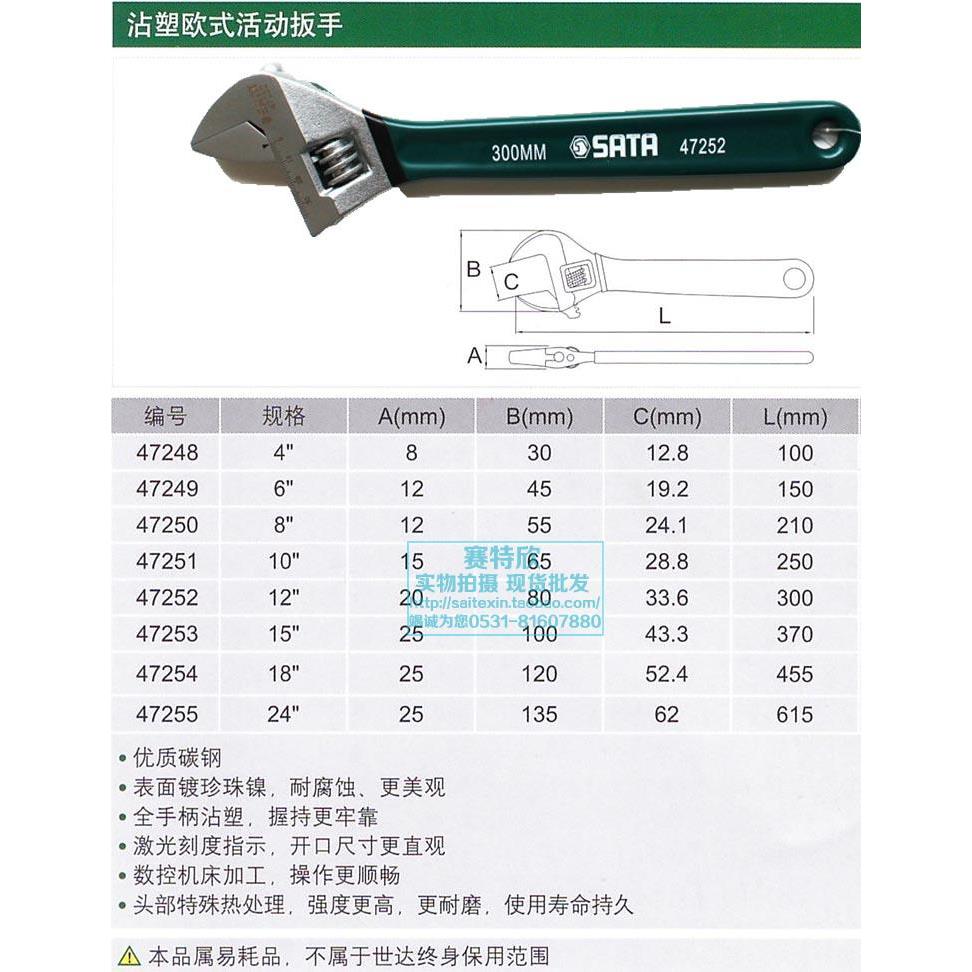 世达工具活扳手47248-255沾塑柄活动扳手4-24寸活络活口扳子
