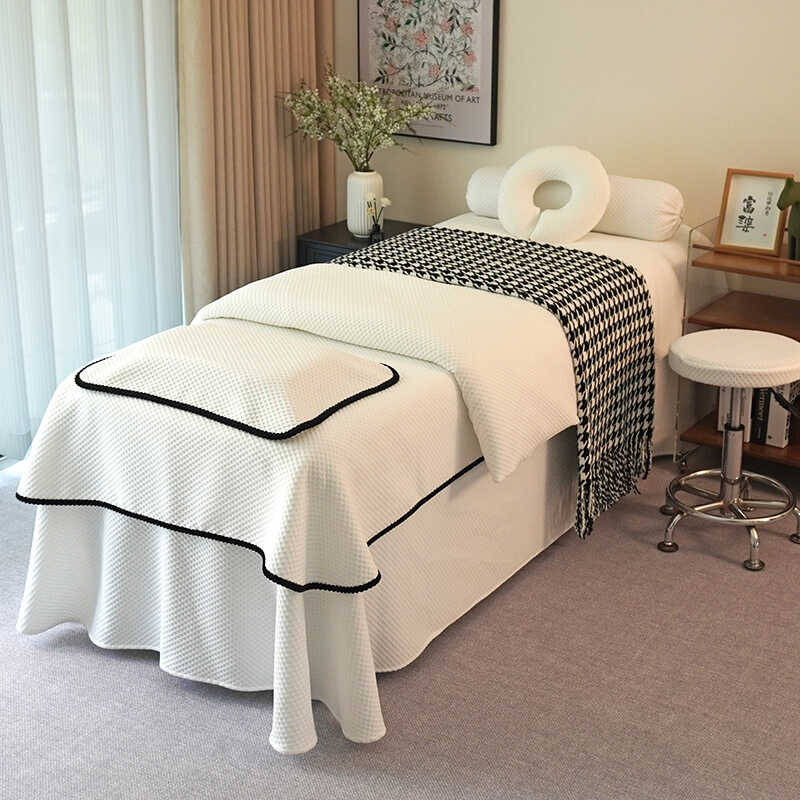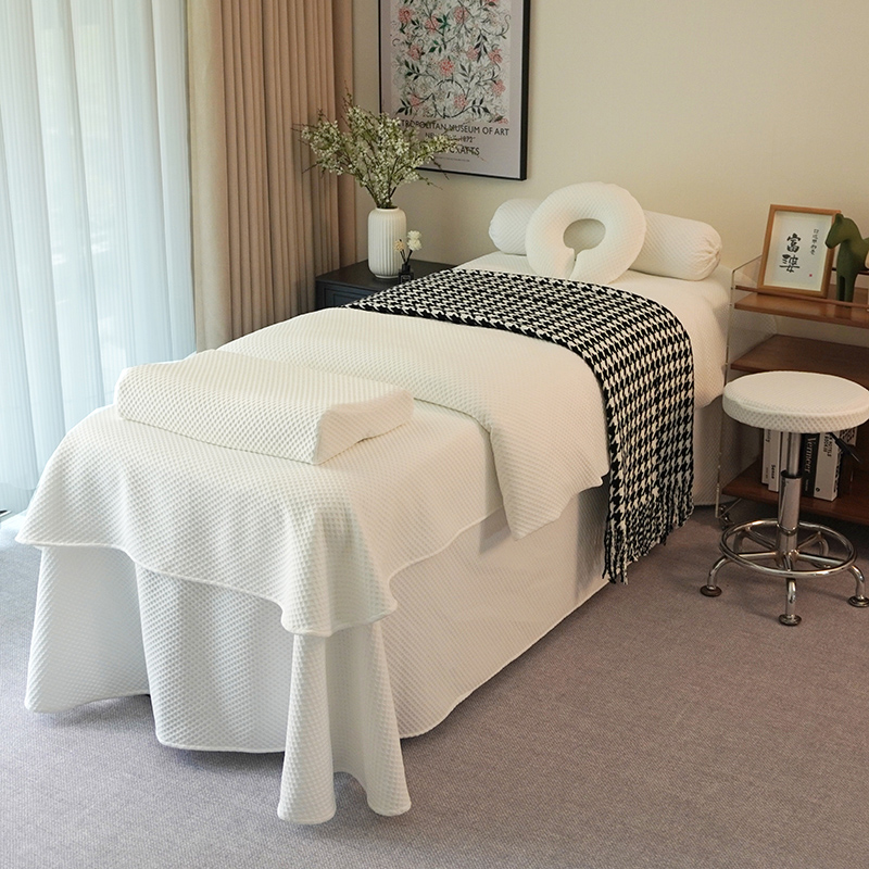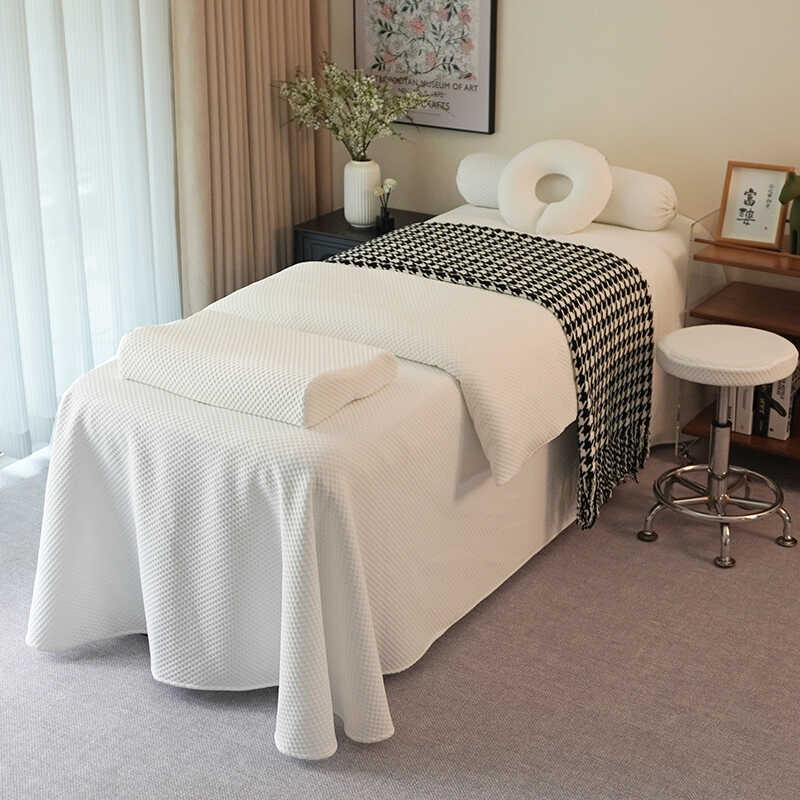 针织棉美容床罩四件套高级轻奢美容院四季2三有洞华夫格小香风ins