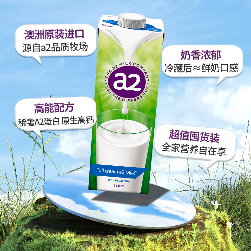 a2澳大利亚原装进口全脂高钙纯牛奶整箱1L*12盒100%生牛乳学生奶