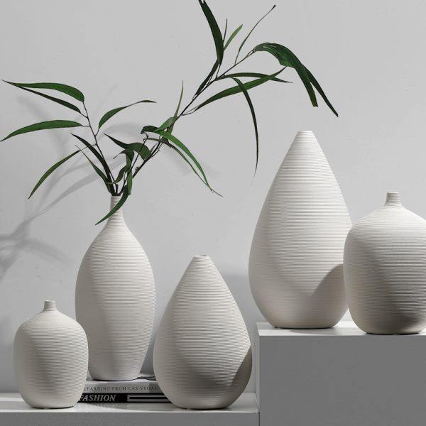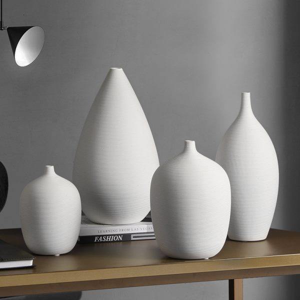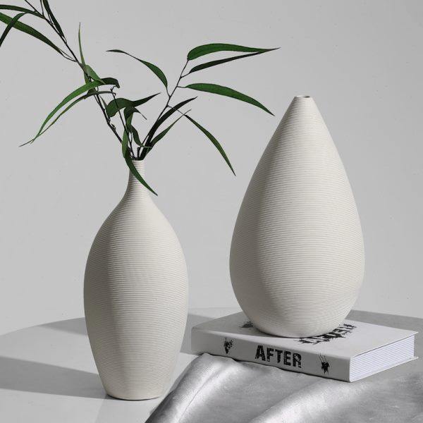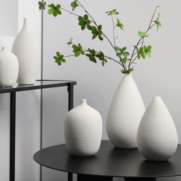 素烧白色陶瓷小口径干花假花瓶客厅餐桌现代简约插花瓶子摆件细口