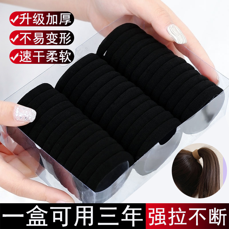 橡皮筋女扎头高弹力耐用发圈加粗头绳简约黑色不伤发发绳皮套头饰