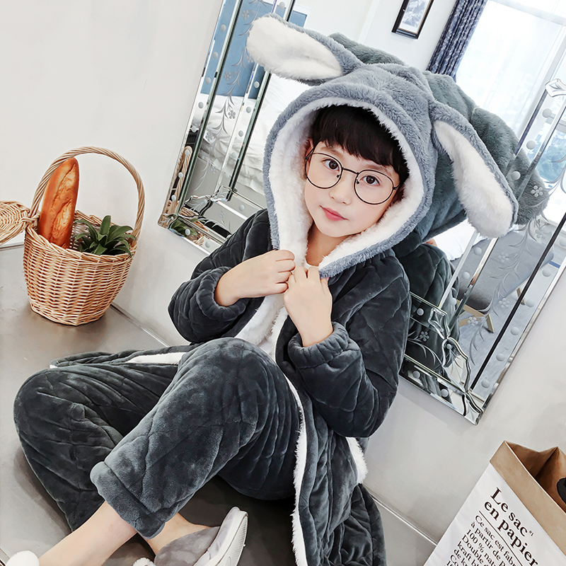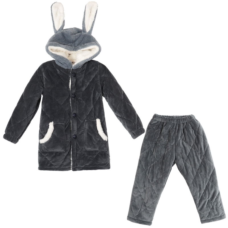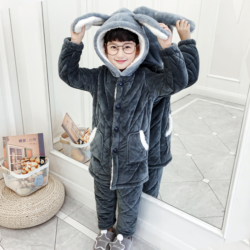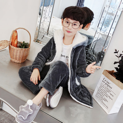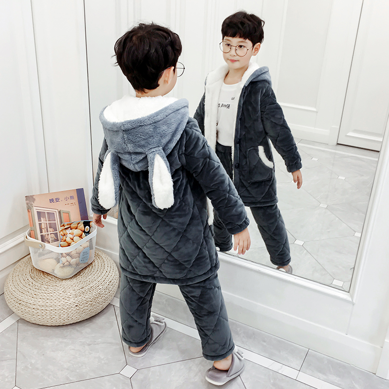 儿童睡衣秋冬季加厚款三层夹棉男童孩珊瑚绒保暖法兰绒大童家居服