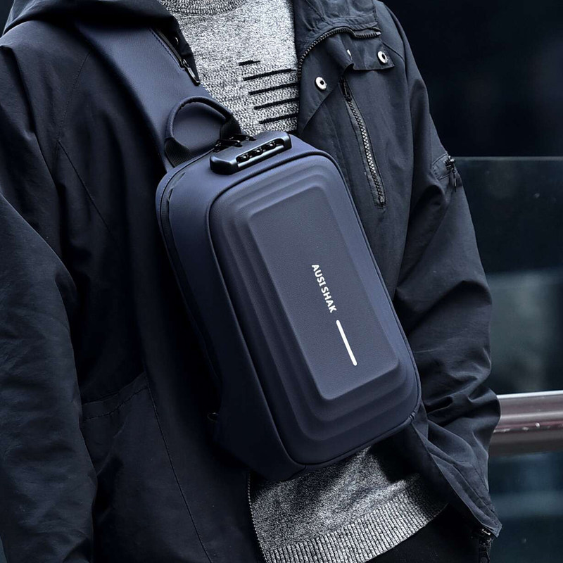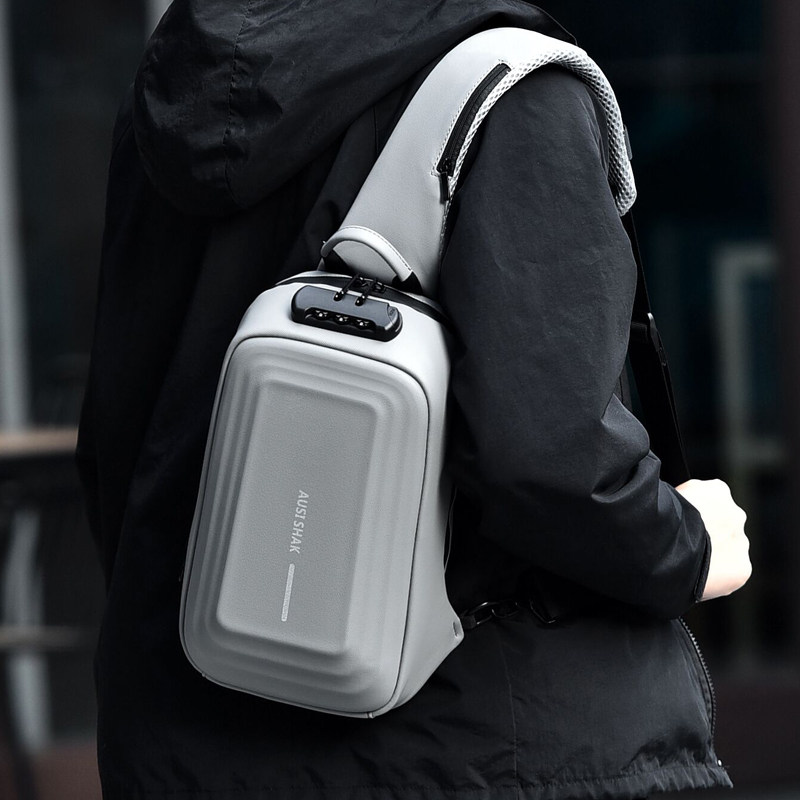 硬壳机车胸包大容量单肩斜挎潮流防水机能包时尚密码锁运动包包邮