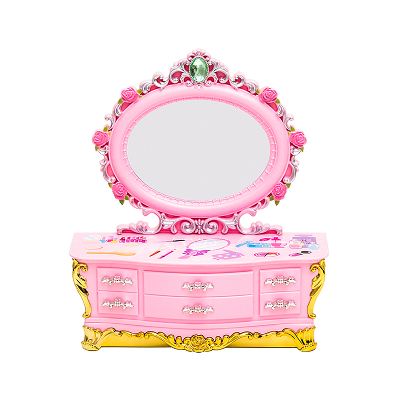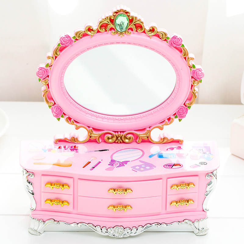 欧式甜美公主粉色梳妆镜八音盒小首饰抽屉收纳音乐盒儿童生日礼品