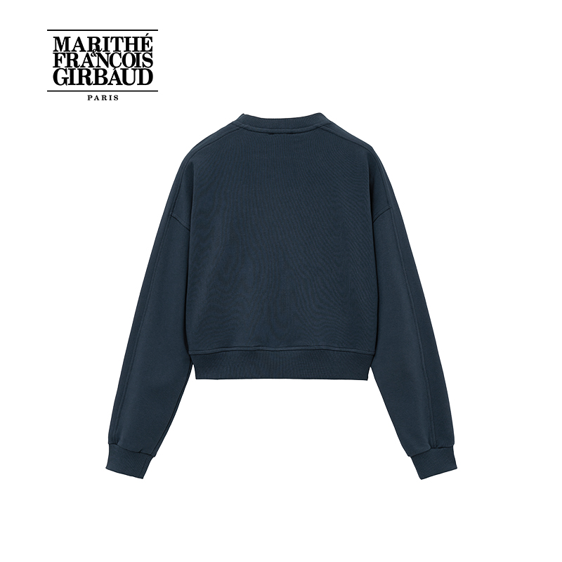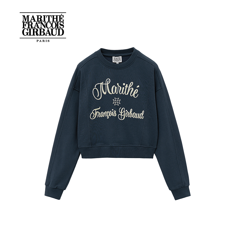MARITHE卫衣 女士短款圆领宽松版链条刺绣松弛度假风减龄2025年秋