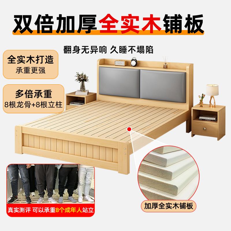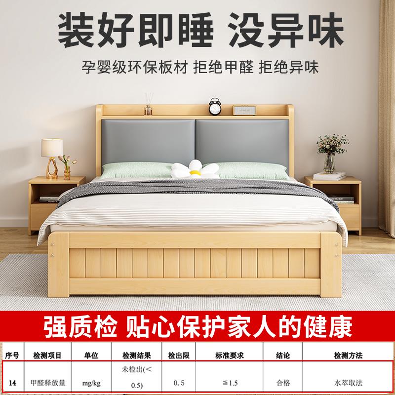 实木床现代简约1.5米主卧双人床经济型1.8m出租房用1.2米单人床架