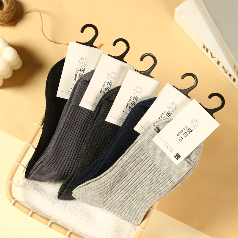 悦自然双针中筒秋冬男袜