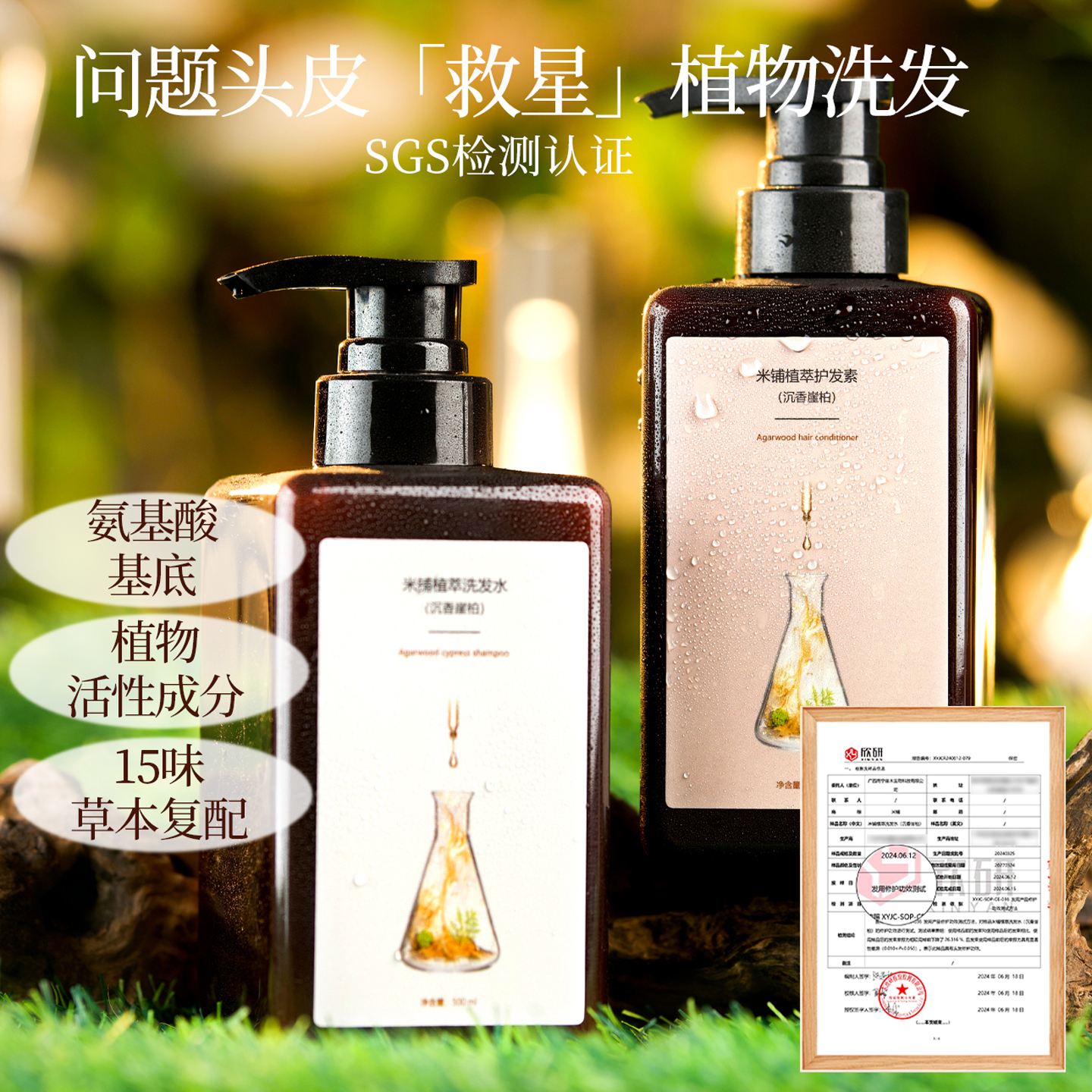 米铺崖柏沉香植萃洗发水控油去屑修复蓬松头皮清洁玫瑰养发洗发膏