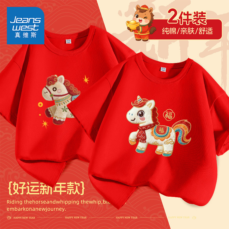 真维斯童装儿童新年款短袖t恤男童马年本命年拜年服女大童打底衫