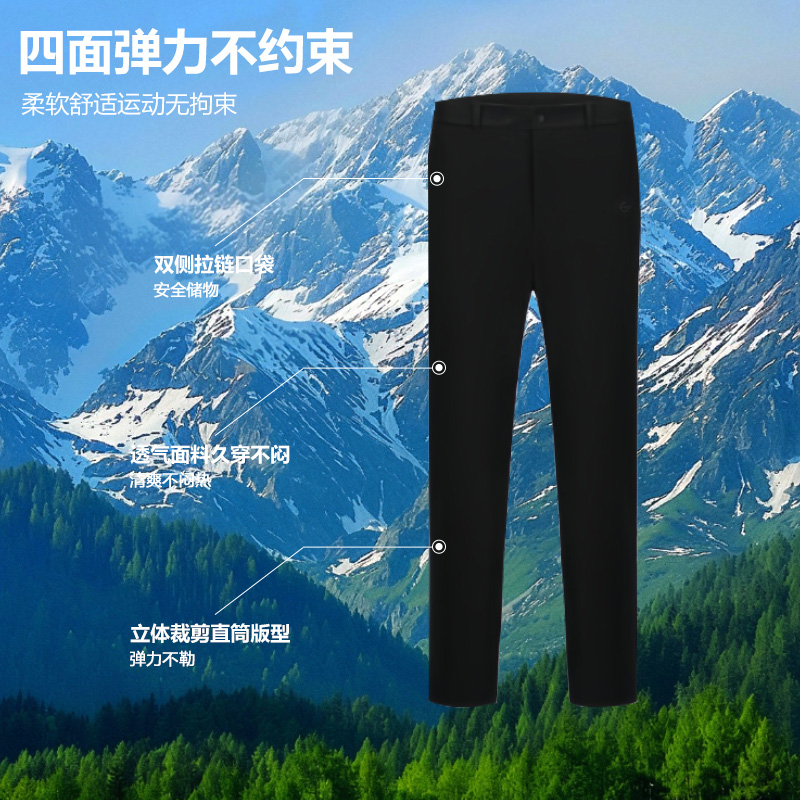 探路者速干裤男户外裤子男款夏薄款男裤女徒步登山裤弹力透气长裤