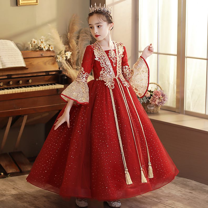 女童汉服2024中国风礼服红色儿童古装过新唐装衣服拜年年年服秋冬