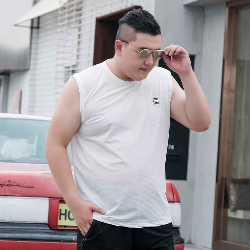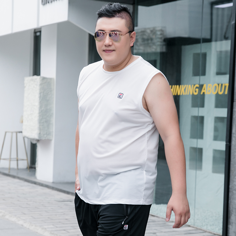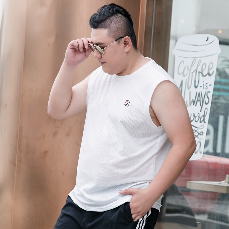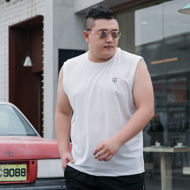 胖子无袖t恤背心男汗衫冰丝运动跑步健身外穿坎肩加肥加大码300斤