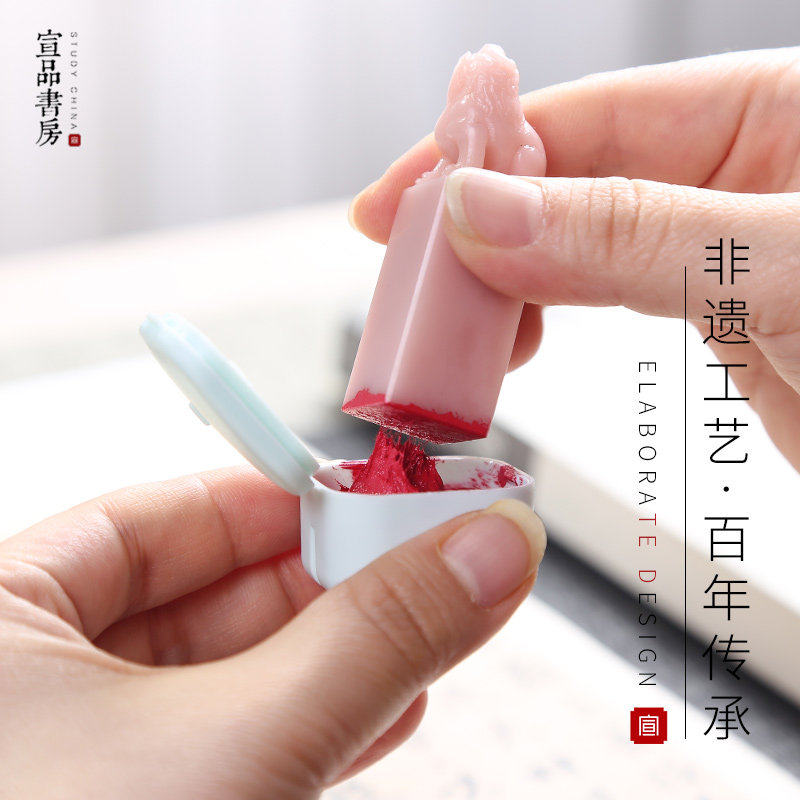 印泥朱膘八宝手工朱砂印泥书法书画作品国展印章篆刻专用仿古红色印泥高档精美包装小号密封带盖便携小学生红