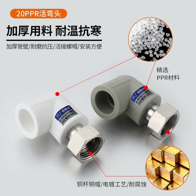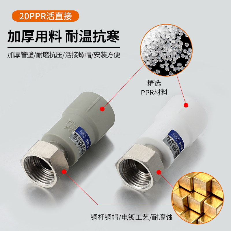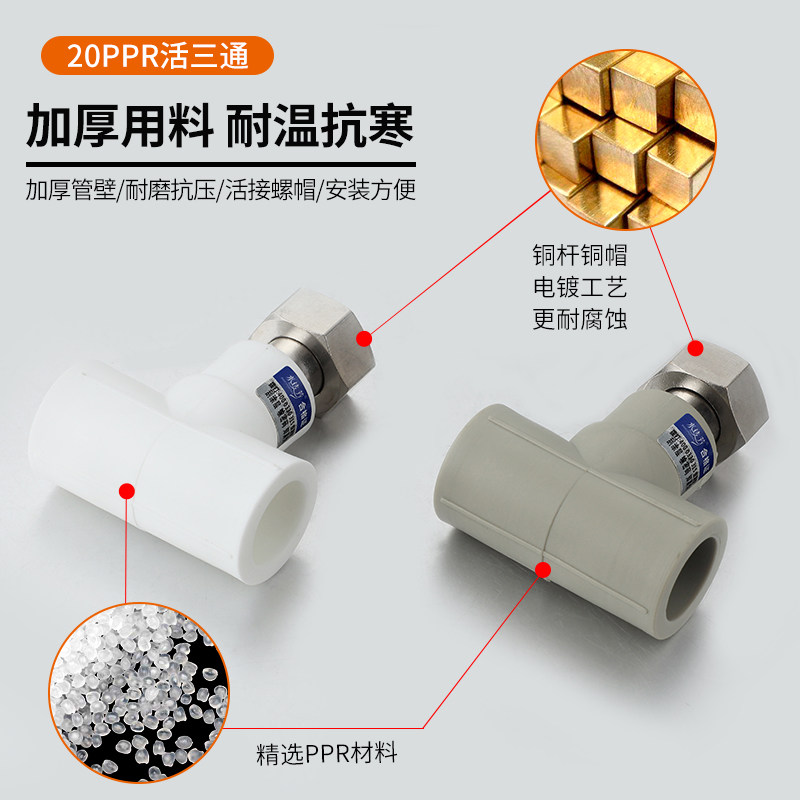 加厚热水器用4分20PPR活接头活直接直通弯头三通水管接头配件管件