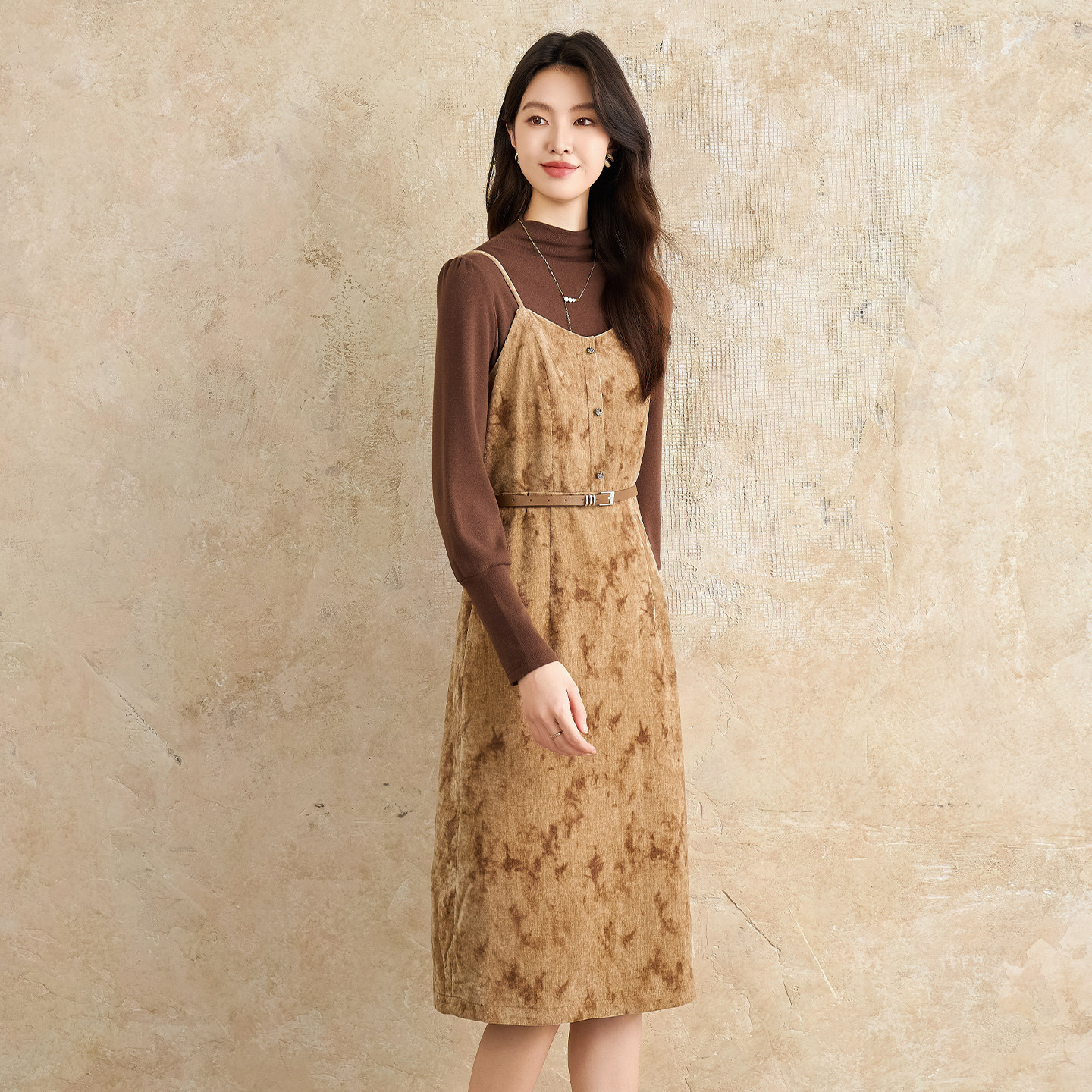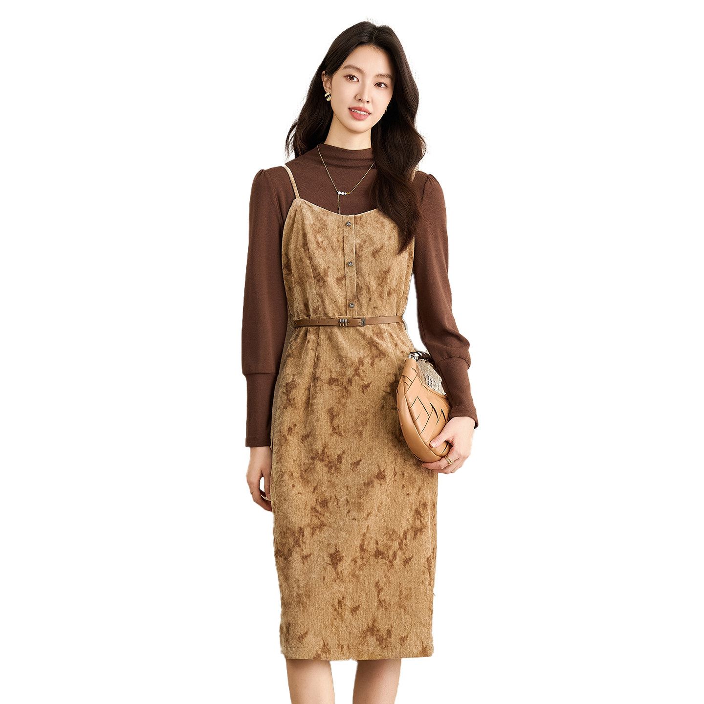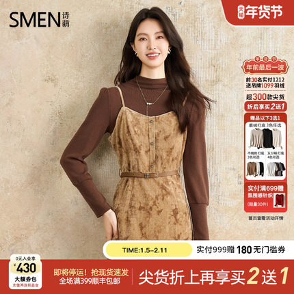 【商场同款】Smen诗萌温柔气质风连衣裙女2025冬季时尚两件套裙子