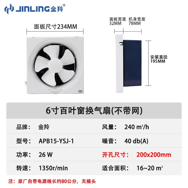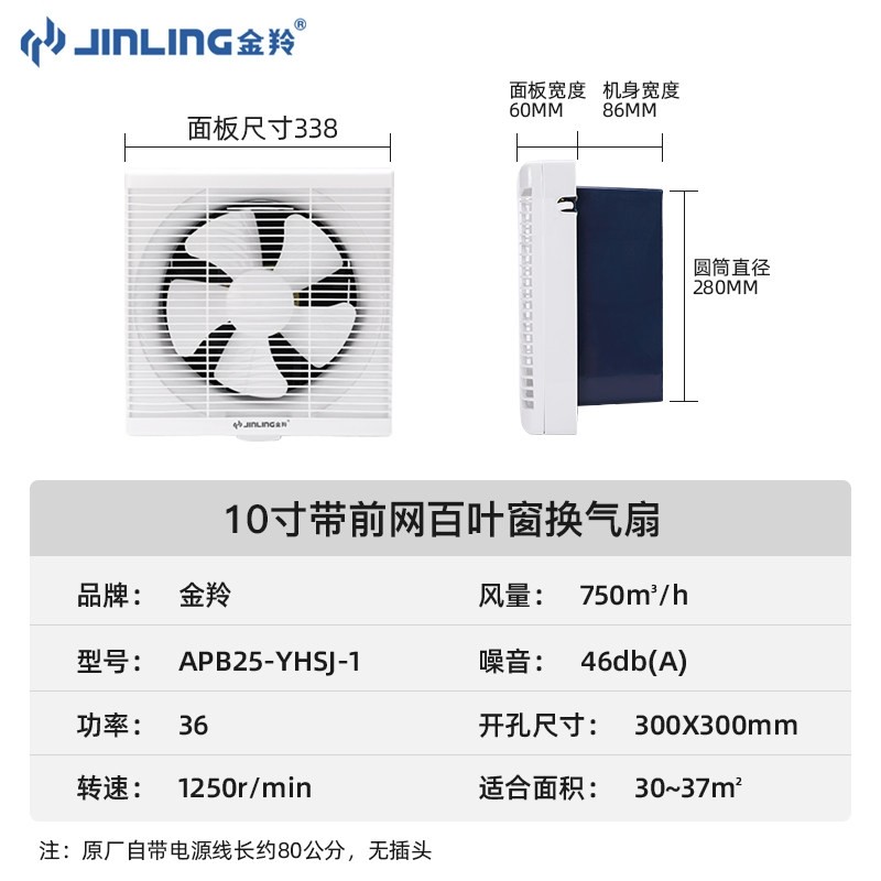 金羚卓誉排气扇8寸家用百叶排风烟抽风机扇强力静音换气卫生间油
