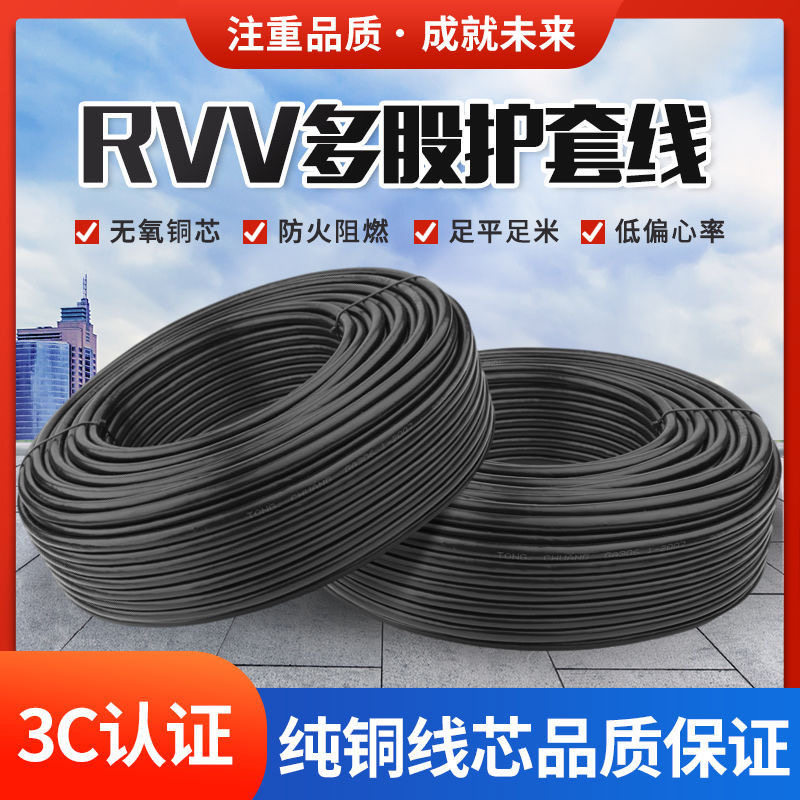 国标纯铜RVV电源线2芯3芯三相软电缆线1.52.56平方监控软护套电线