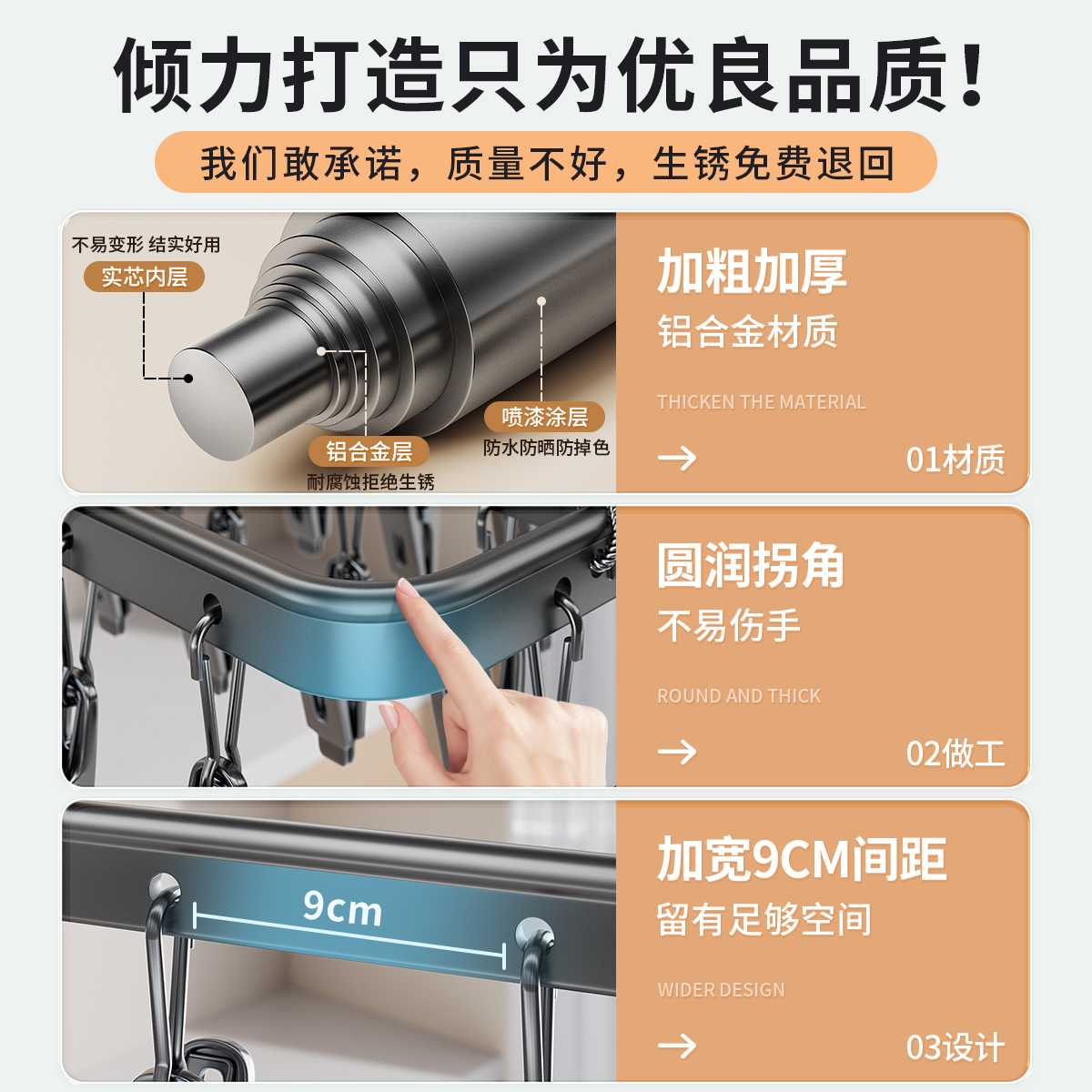 铝合金袜子晾晒架多夹子无痕不锈钢晾衣架内衣神器内裤防风阳台
