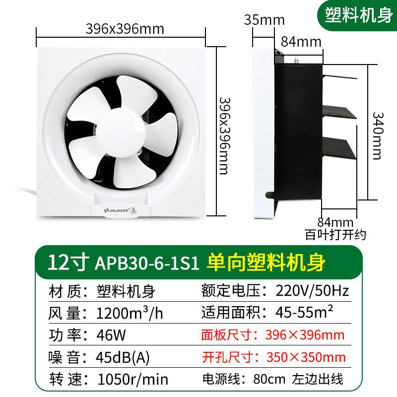 金羚换气扇12寸百叶窗厨房油烟强力抽风机 静音排气扇APB30-6-1S1