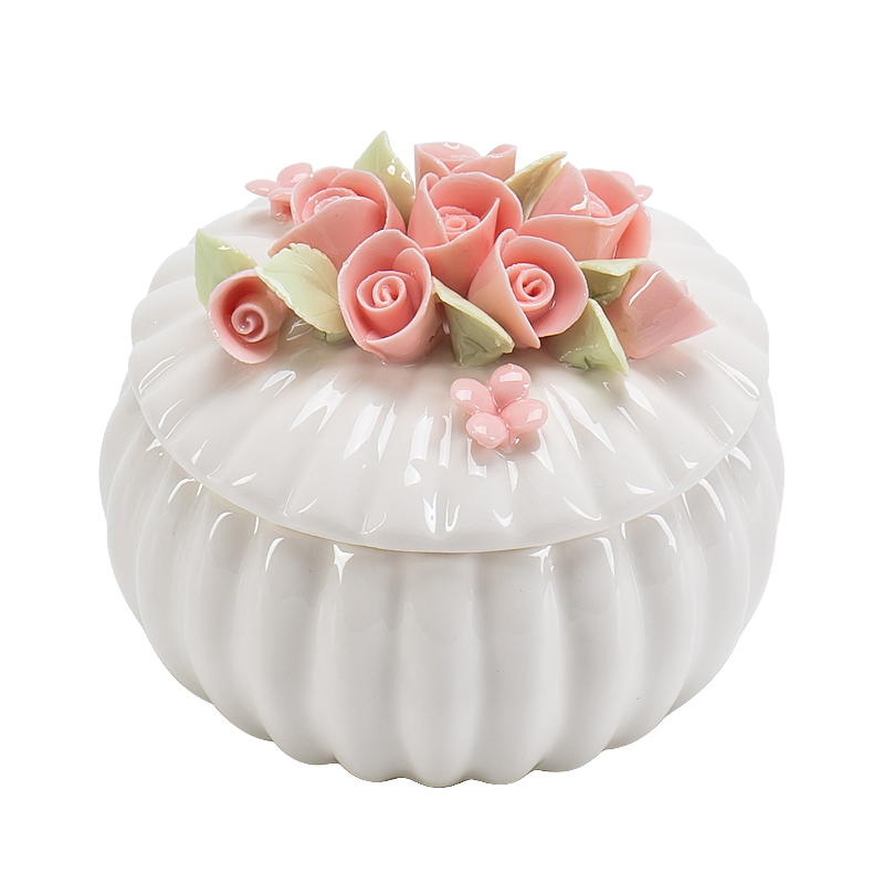 丰白陶瓷手捏花粉色玫瑰饰品盒