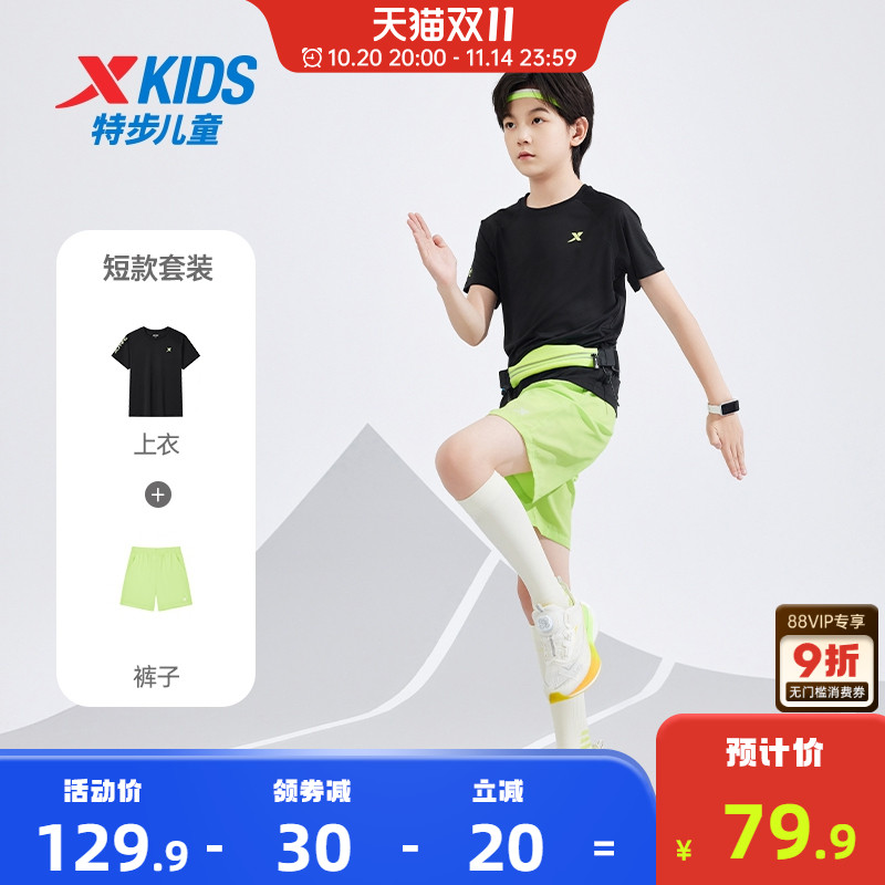 特步童装儿童套装男童夏季新款速干女童运动服中大童透气短袖短裤