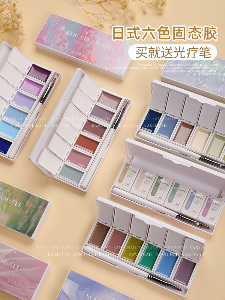 美甲固态甲油胶盘 6色指甲油胶套装2025新款秋冬固体美甲盘光疗胶