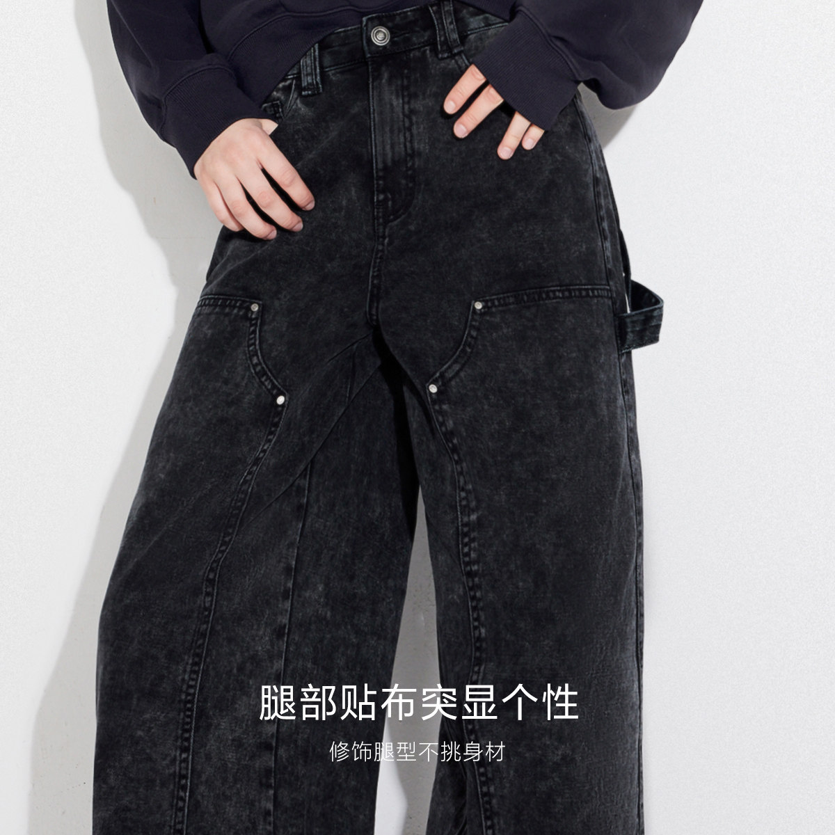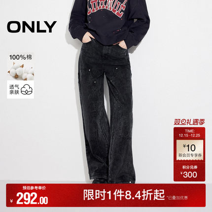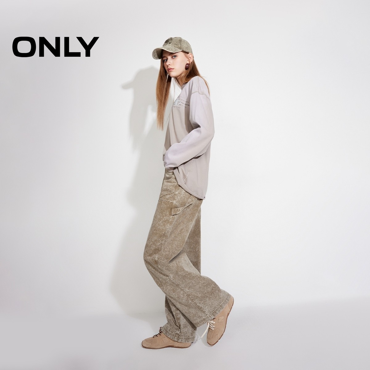 ONLY奥莱2025秋冬新款复古做旧宽松长裤阔腿裤休闲裤女