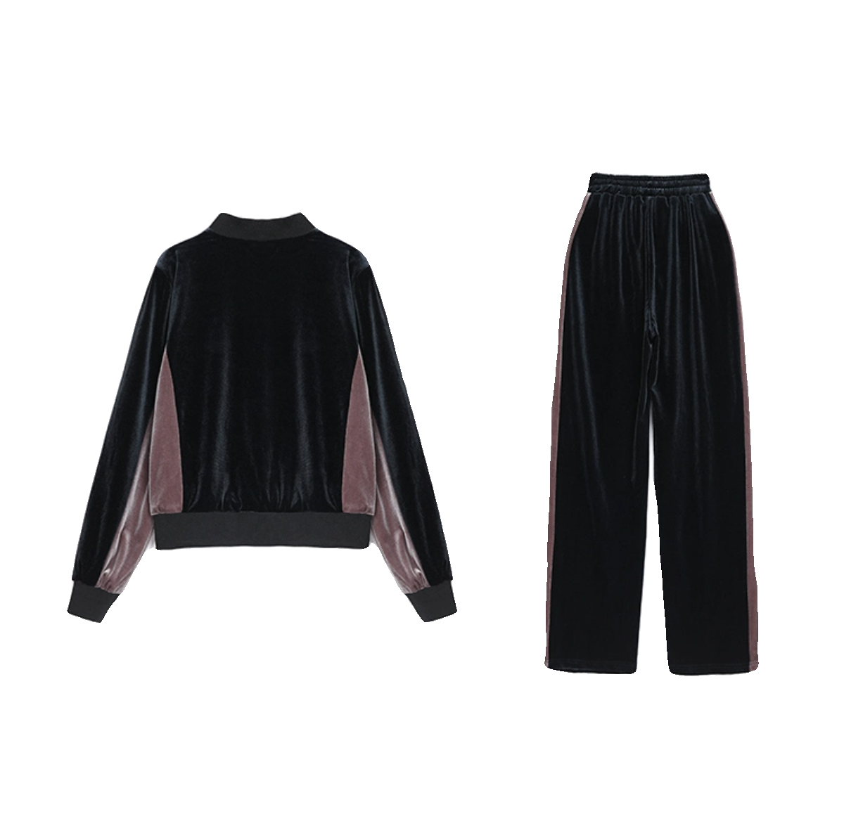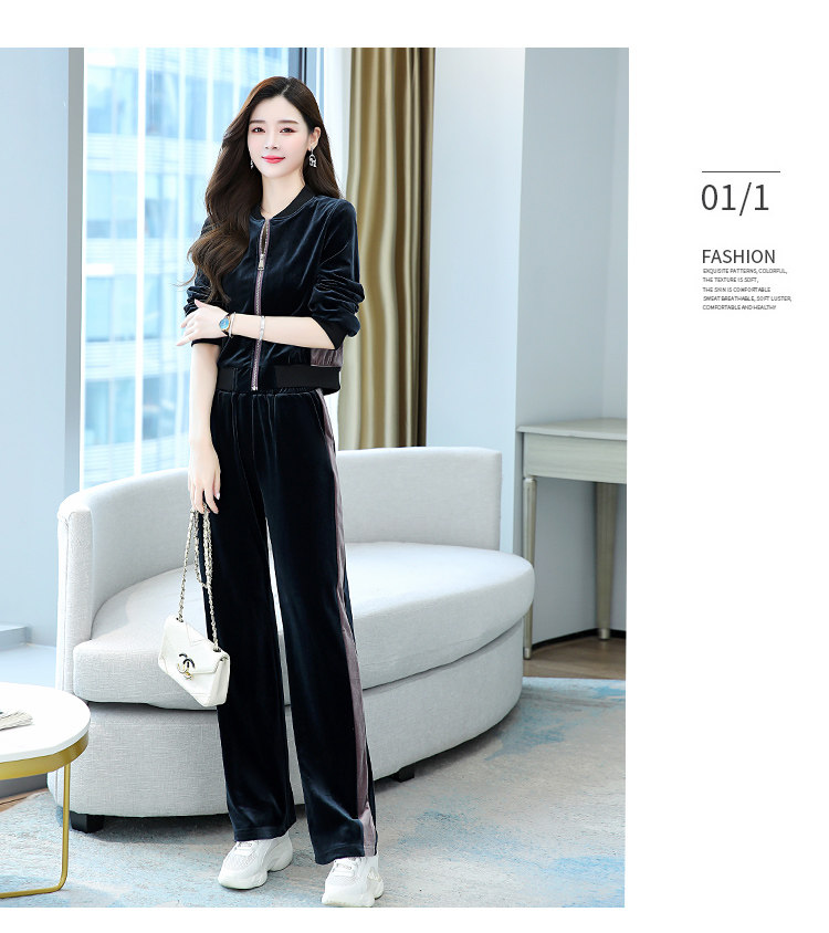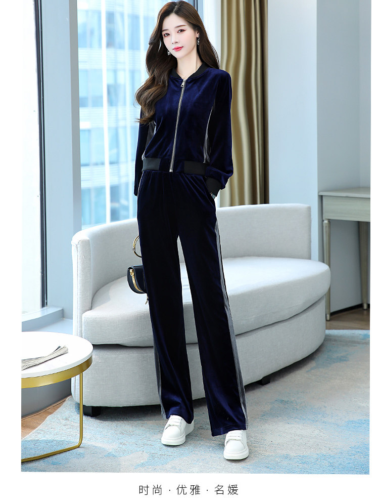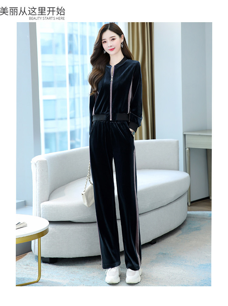 金丝绒休闲套装女春秋新款韩版时尚气质圆领棒球服+阔腿裤两件套
