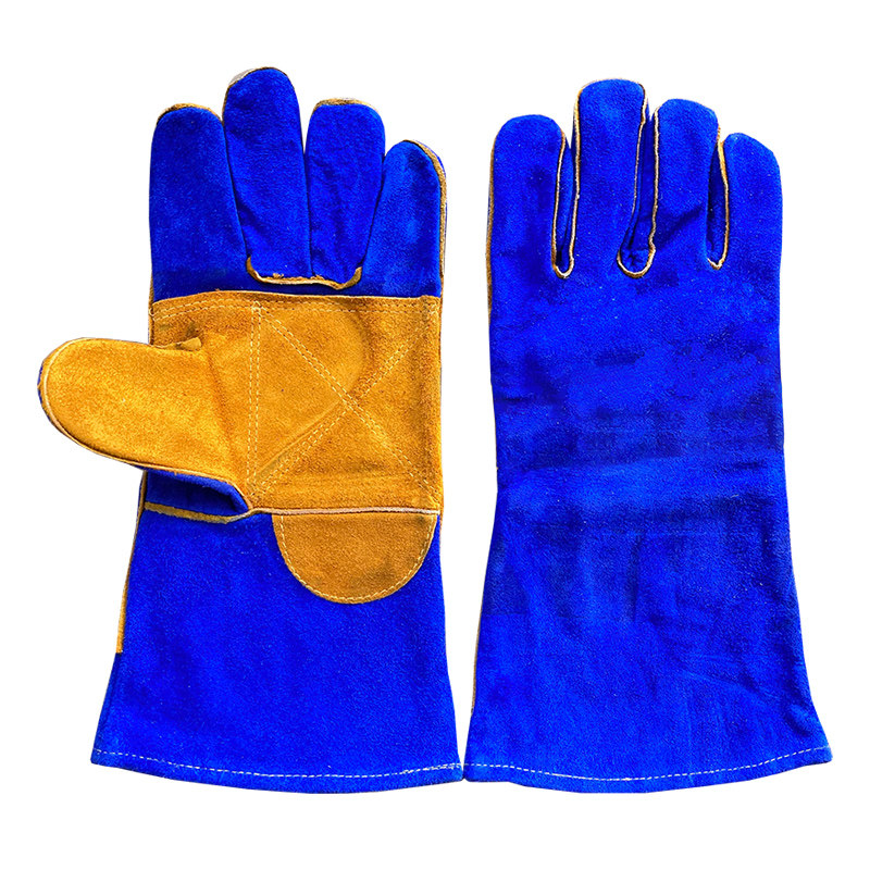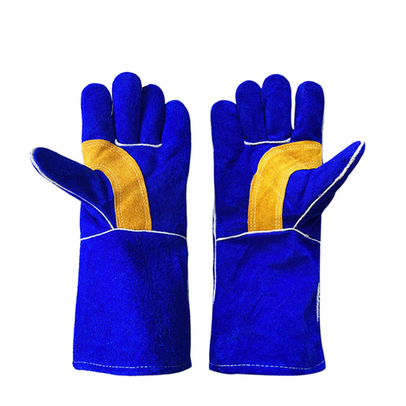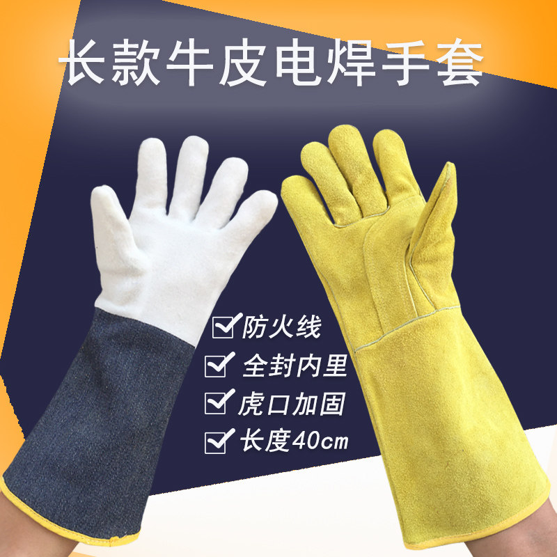 防火线长款蓝色加厚牛皮电焊焊工劳保手套隔热防烫左手单只右手