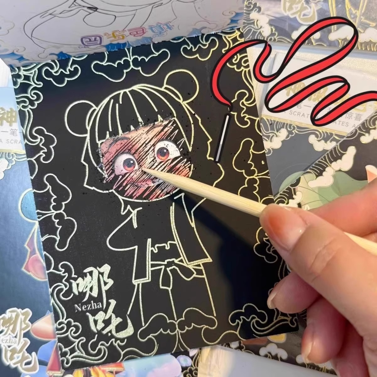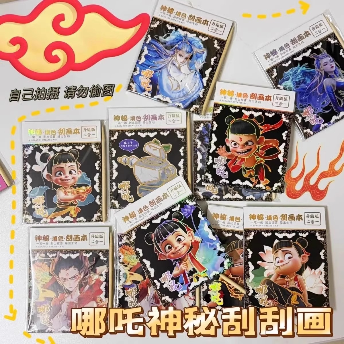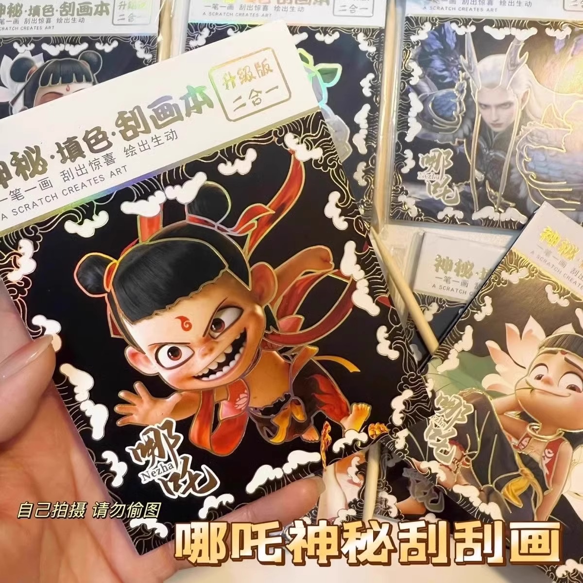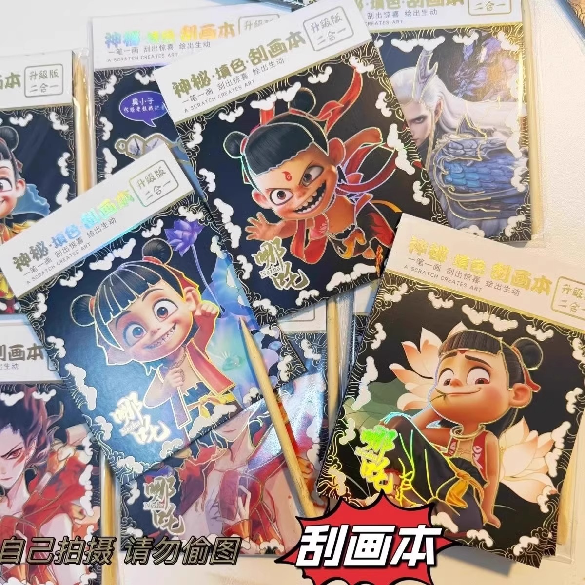 哪咤刮刮画儿童便签本小学生六一节礼物卡通创意类彩砂纸画画玩具