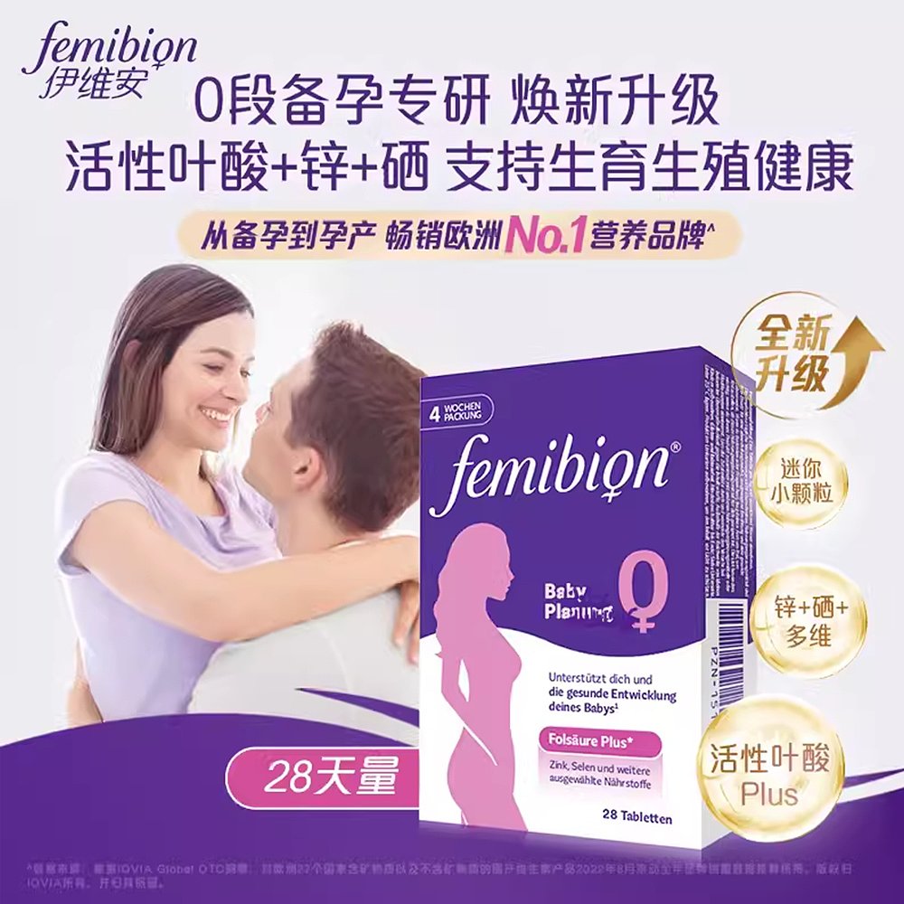 欧洲直邮德国Femibion伊维安0段备孕专用活性叶酸复合维生素4周量