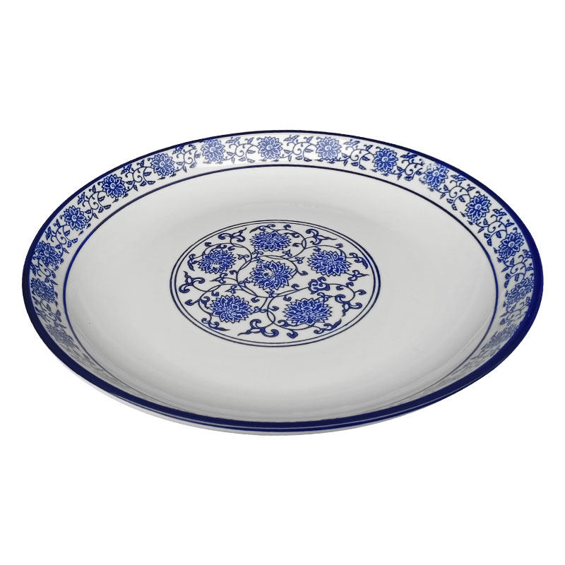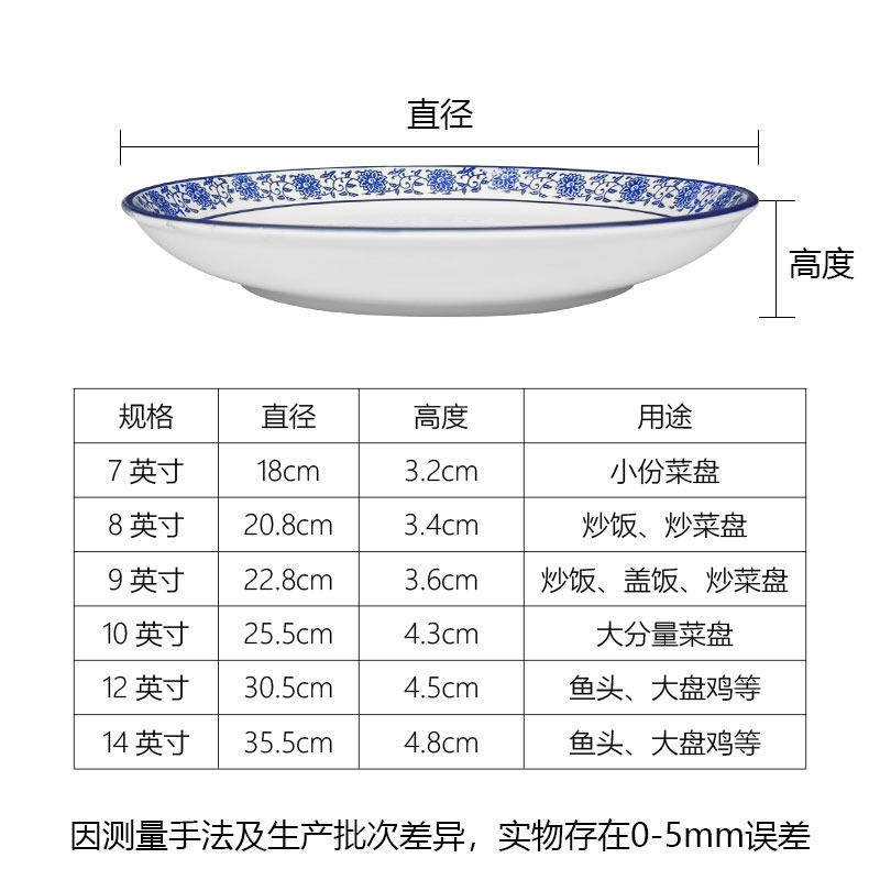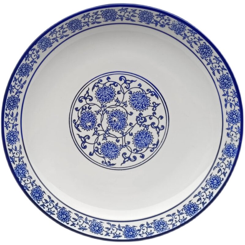 复古青花瓷圆形盘子商用陶瓷饭盘深盘江湖菜农家乐大号炒菜盘果盘