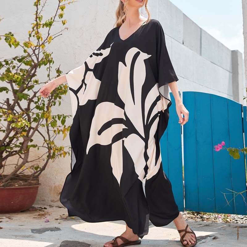 2025年新款希腊波西米亚气质连衣裙大码微胖显瘦海边度假沙滩长裙