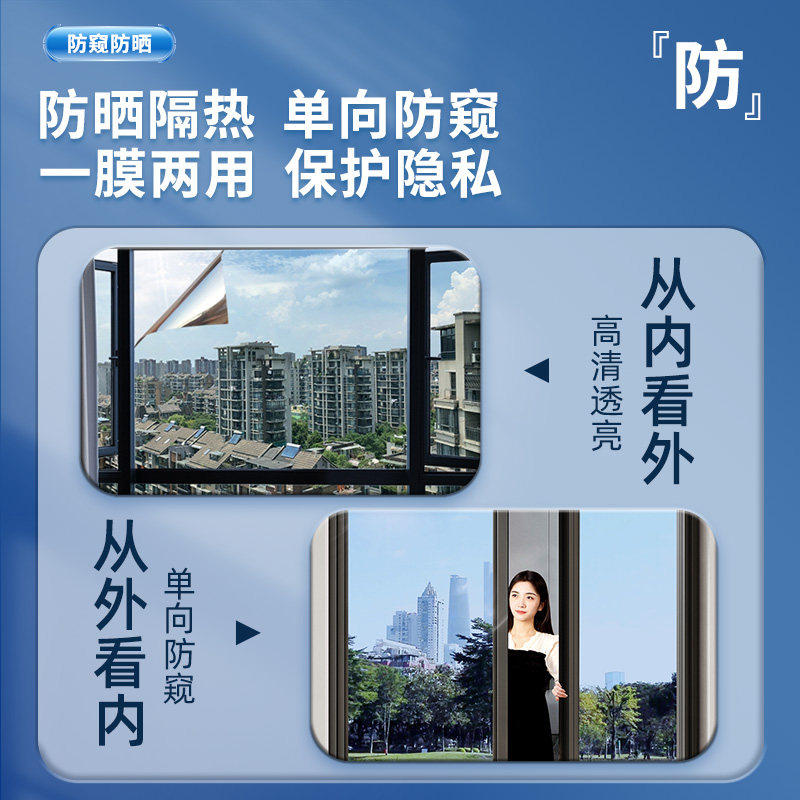 窗户防晒隔热膜玻璃贴纸家用太阳膜阳台遮阳遮光单向透视防窥贴膜