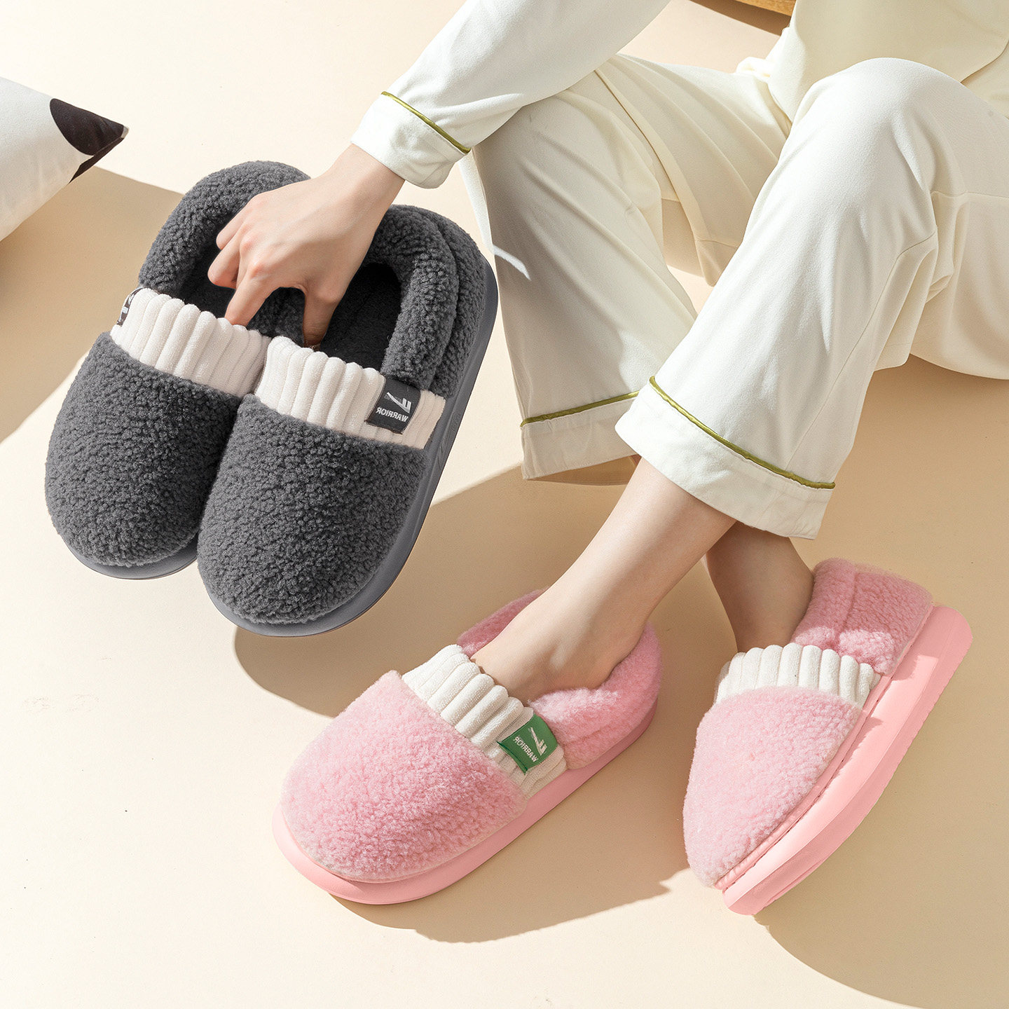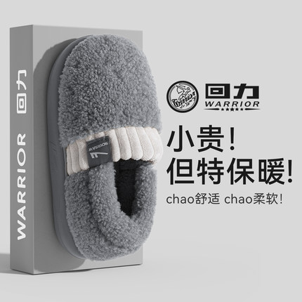 回力棉拖鞋男款包跟2025新款冬季家居室内防滑加绒保暖毛绒拖鞋女