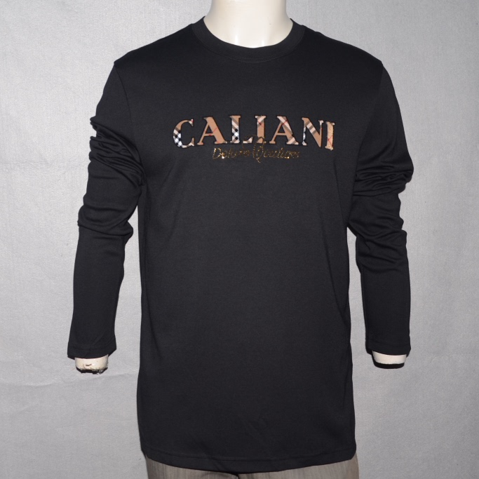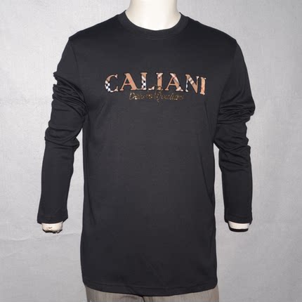 CA男装秋冬长袖圆领T恤衫 时尚LOGO植绒t恤 潮牌黑上衣打底面衫