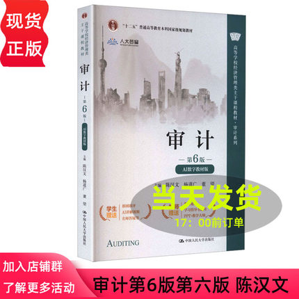新版 审计 第6版第六版 陈汉文 AI数字教材版 高等学校经济管理类教材 附带学习码 审计学习指导辅导书 中国人民大学出版社