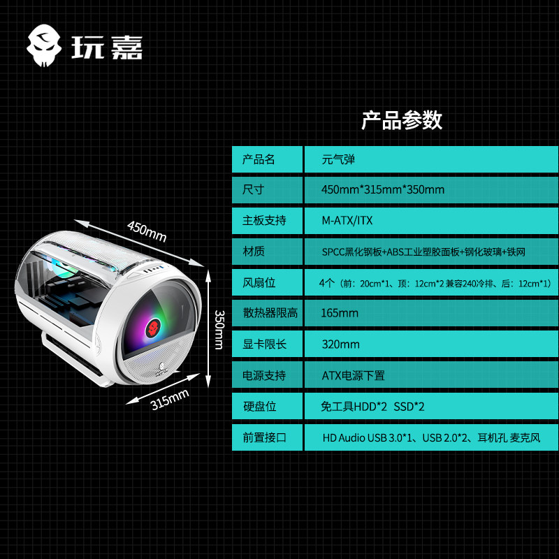 玩嘉元气弹电脑机箱台式机matx网吧异型机箱显卡竖装侧透个性机箱