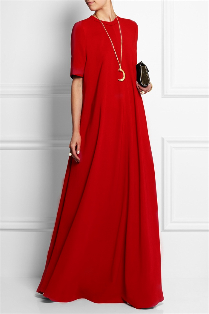 新款韩版大码女装长款连衣裙圆领短袖宽松大摆休闲显瘦长裙气质