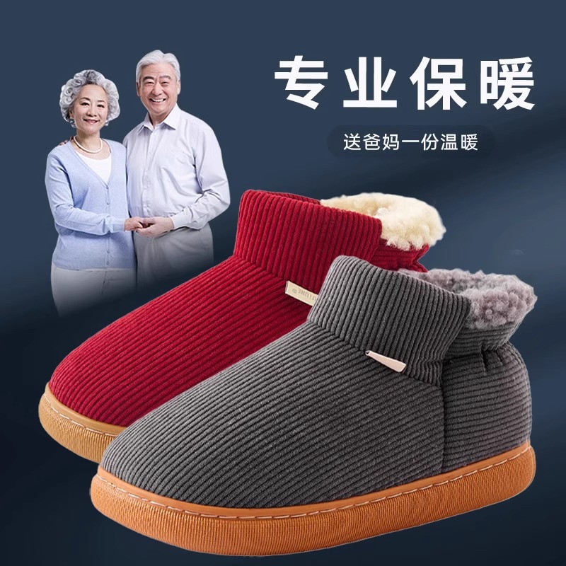 优调老人专用棉鞋男女冬季保暖加绒室内家居包跟中老年棉拖鞋防滑